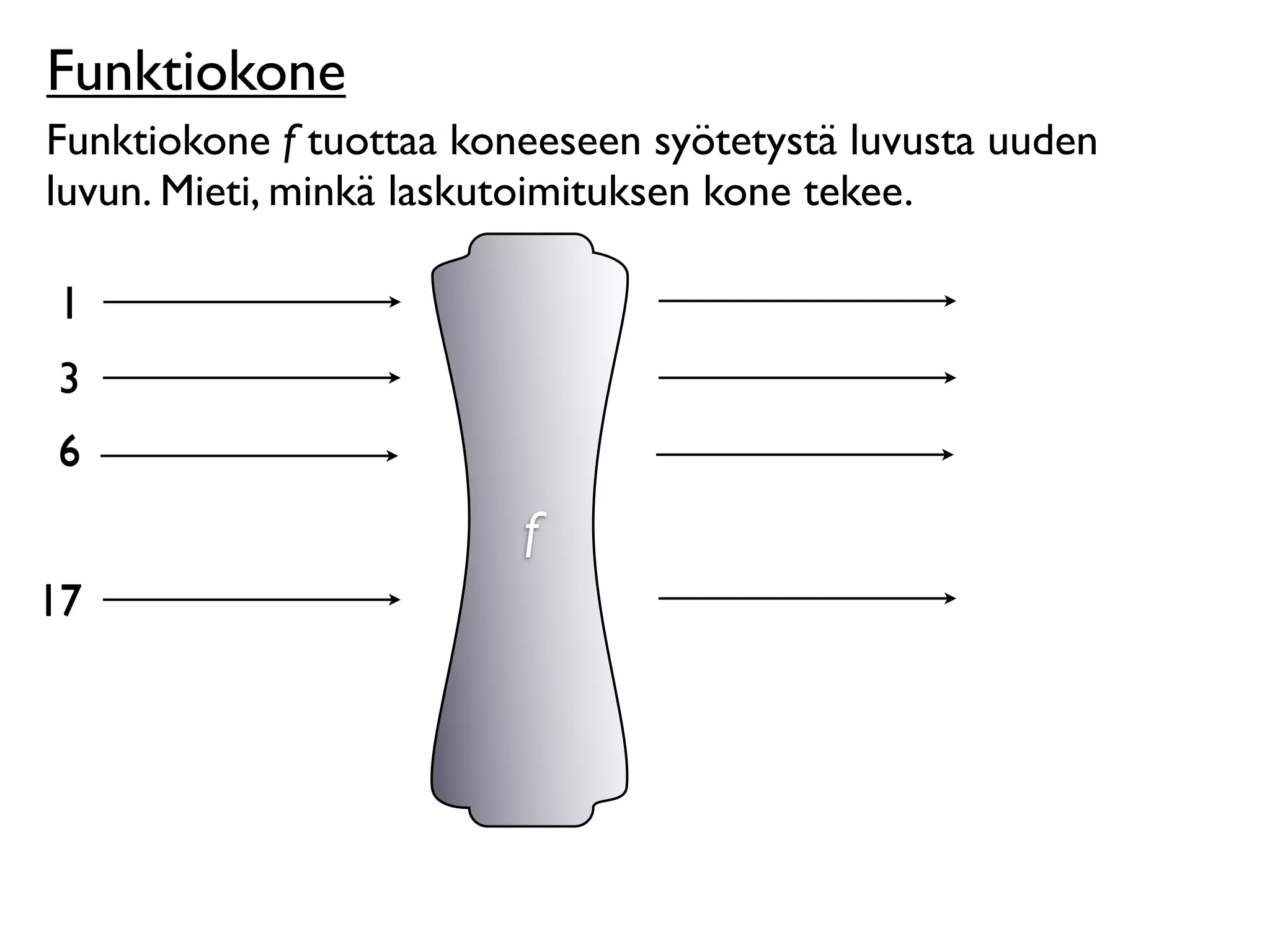 luvun. Mieti, minkä laskutoimituksen kone tekee. Merkitään: f(1) = 3