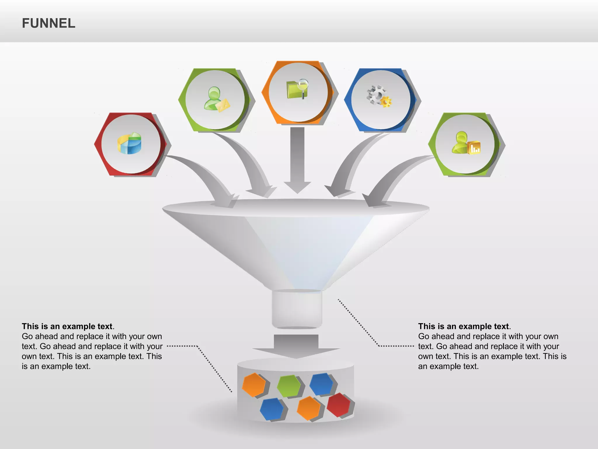 The document is comprised of repeated phrases such as "This is an example text" and instructions to "Go ahead and replace it with your own text". It appears to be providing examples of formatting for a funnel or template with placeholder text.