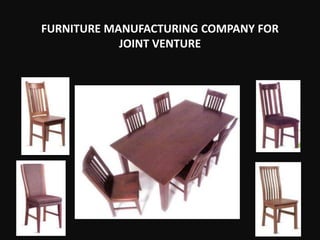 The company was established in 2000 to manufacture and export hardwood furniture and brush blocks. It operates a 20,000 square foot factory located in an export processing zone 50km from Colombo, Sri Lanka, and has space to expand to 60,000 square feet. The company seeks investors to inject capital and transfer technology to utilize local wood resources and craftsmanship to produce furniture for export markets like Europe, North America, and Asia. Current annual turnover is $300,000 with capacity for $1.5 million annually by expanding production lines and exports.