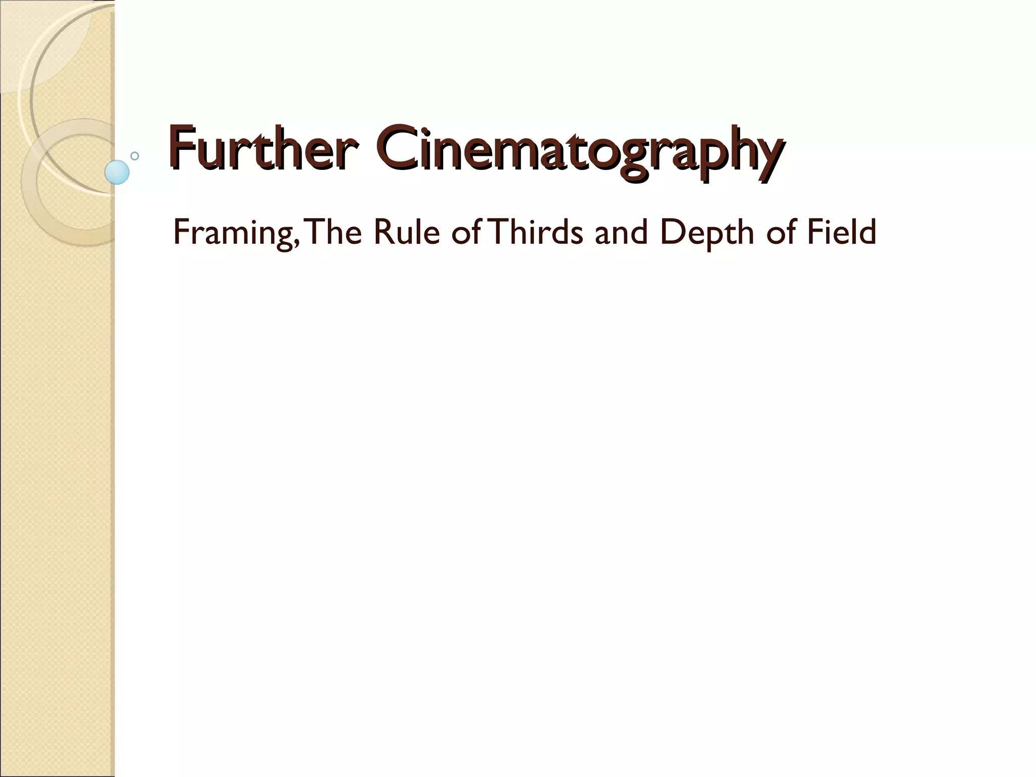 The document discusses various cinematography techniques including framing, the rule of thirds, depth of field, and their effects on conveying meaning. It explains how character positioning within a frame can indicate their status, power, and personality. Shots from higher or left angles are usually more dominant. Depth of field refers to what is in focus in the foreground, middle ground, and background and how this directs viewer attention. Examples are provided of different depth of field techniques and their purposes.