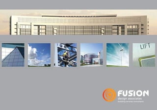 Fusion Design Associates is a building services consulting firm that provides mechanical and electrical design, energy and utility management, and sustainability services. They offer a range of services including full M&E design, lighting design, project management, energy assessments, and more. They work on various project types including commercial, retail, leisure, residential, education, health, and industrial. Their goal is to deliver practical yet innovative engineering solutions to help clients realize their visions.
