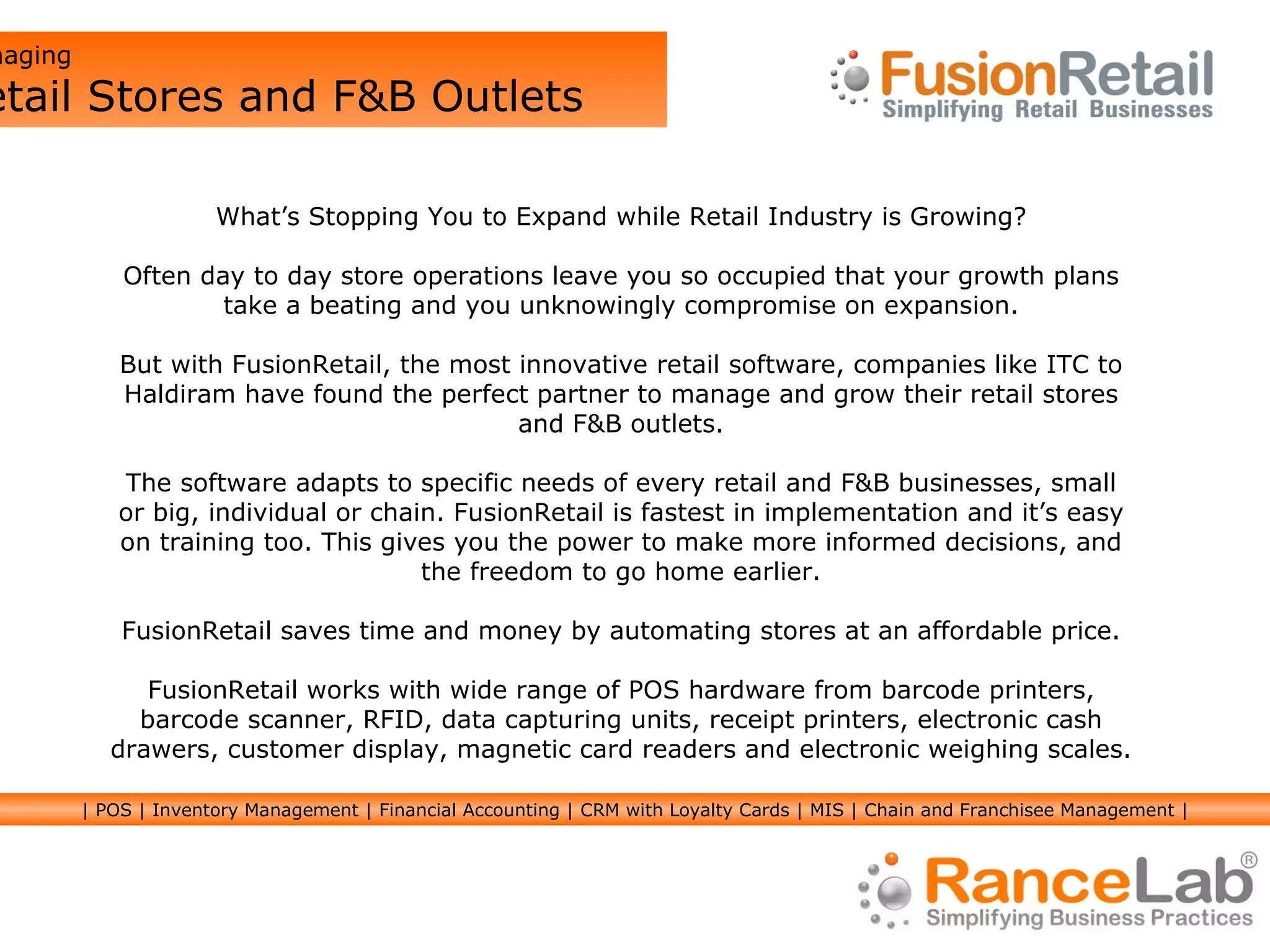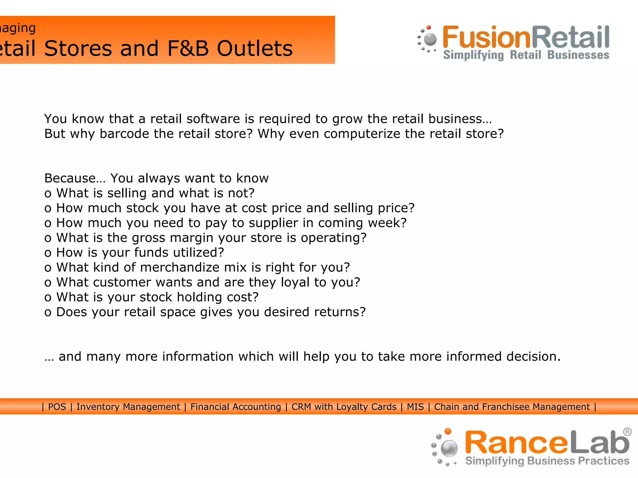 The document discusses the benefits of using retail management software like FusionRetail to automate and grow a retail business. It allows retailers to track key metrics like sales, inventory levels, profits and more to make informed decisions. FusionRetail provides integrated point of sale, inventory management, financial accounting and other features to manage retail operations and help businesses expand more efficiently. The software can be quickly implemented without disrupting store operations.