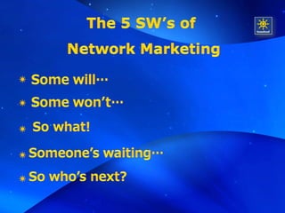 This document outlines the network marketing plan and compensation structure for Fusion Excel. It describes the business opportunity of selling Scalar energy products and building a network of distributors. The plan incentivizes recruiting multiple business centers to earn bonuses daily from product sales and matching commissions from those you recruit.