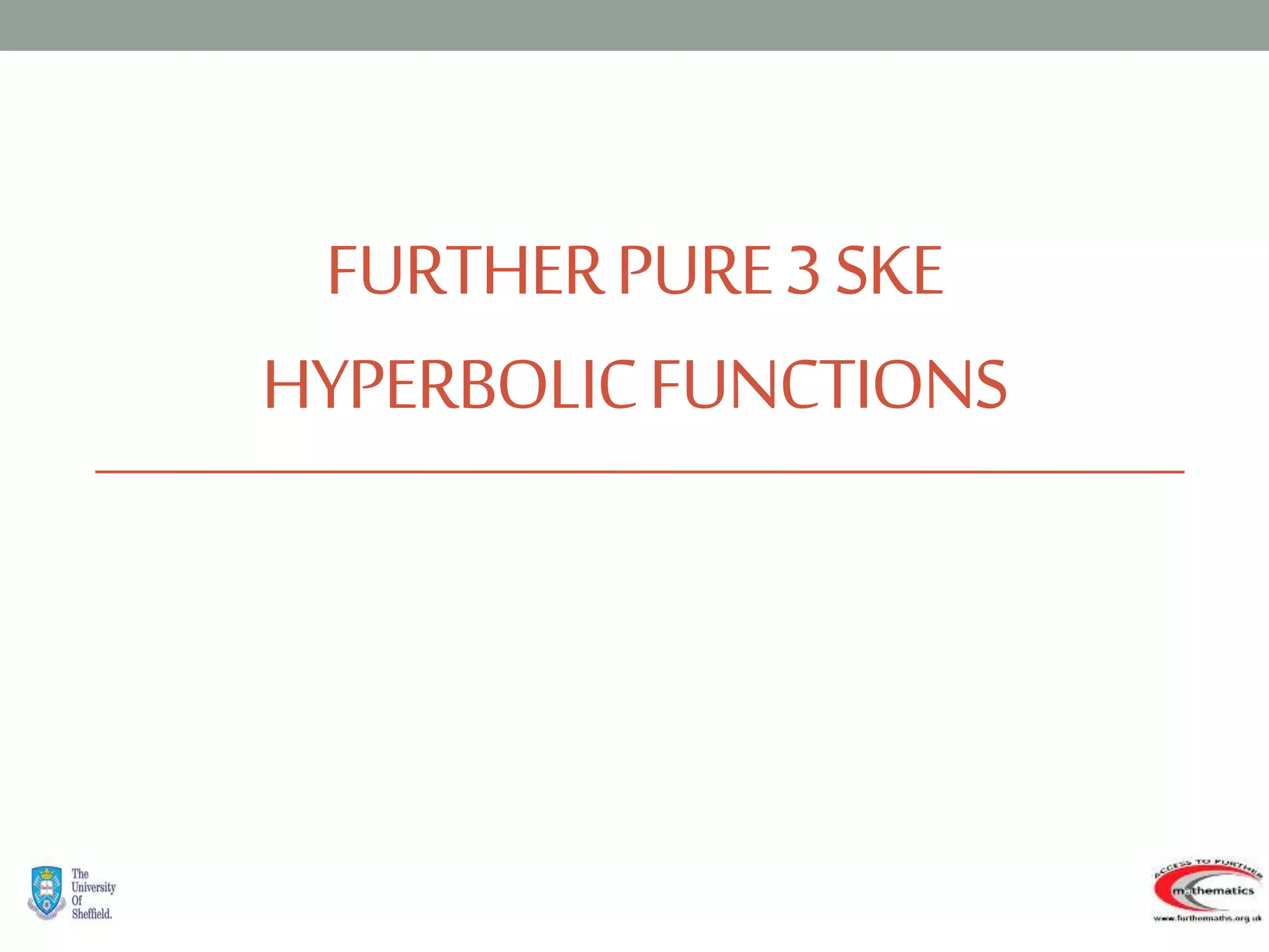 This document provides an overview of hyperbolic functions including:
