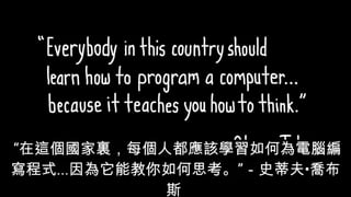 本文件讨论了如何通过培训自学能力和创造力来提升未来的竞争力,强调程序教育在培养学生关键能力方面的重要性。文中提到,未来工作的65%将是当前不存在的,孩子们应具备创新和适应变化的能力,以应对人工智能和科技的发展。此外,文件还介绍了乐学程式推广的目标与计划,旨在以趣味和实践的方法激发学生的学习动机。