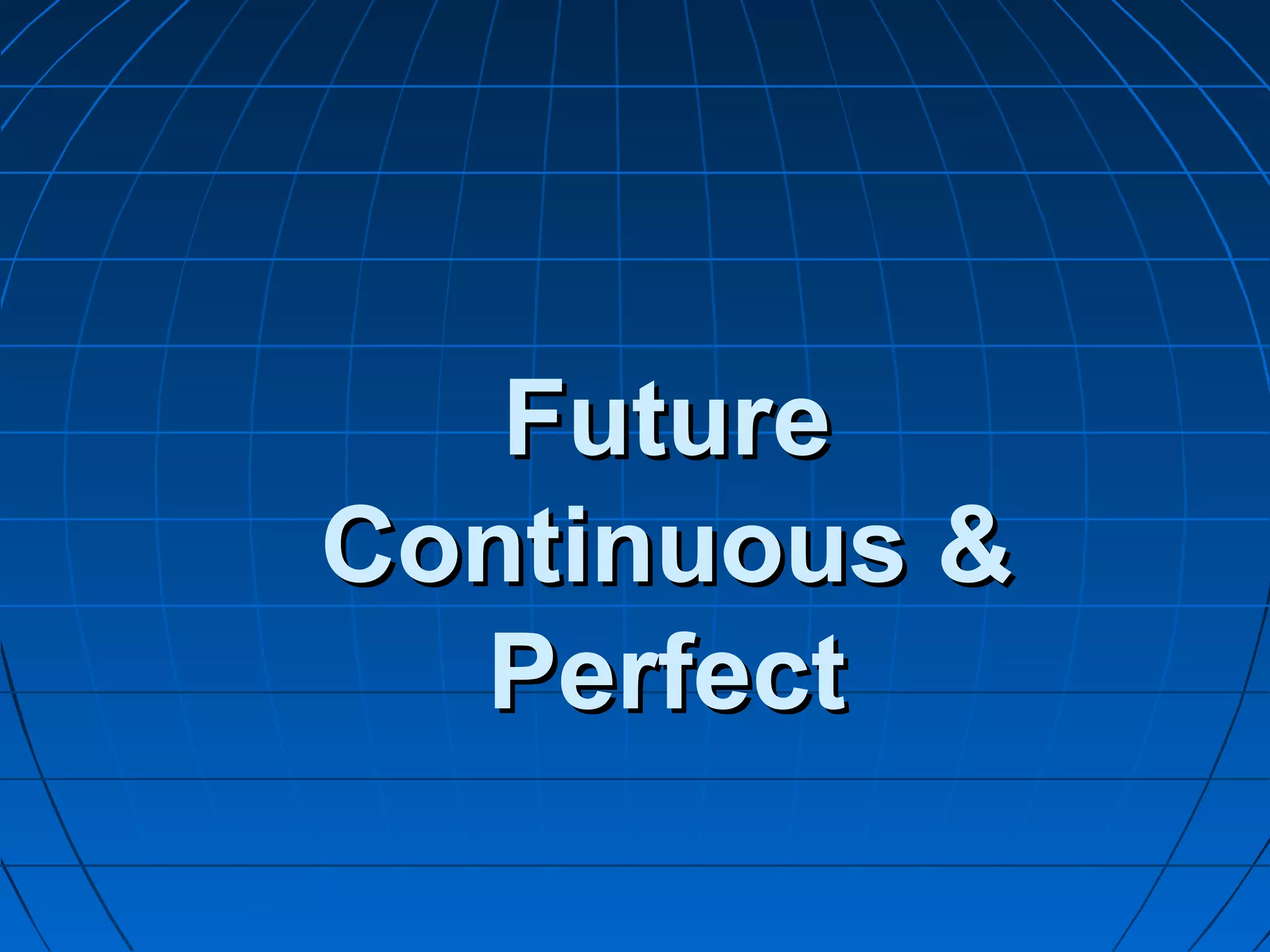 This document provides information on how to use the future continuous and future perfect tenses in English. The future continuous is formed using "will" + "be" + verb+ing and is used to talk about actions that will be in progress at a specific time in the future. The future perfect is formed using "will" + "have" + past participle and is used to talk about completed actions or events in the future, or to look back from the future to an earlier event, often using "by" or "by the time". The future perfect continuous is formed using "will" + "have" + "been" + verb+ing and is used to say how long an action will have been in progress