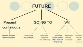 The document provides a detailed explanation of the future continuous tense, including its structure, usage in affirmative, negative, and interrogative forms, and examples. It discusses the various functions of the tense, such as indicating interrupted actions, making predictions about future events, and describing simultaneous actions. Additionally, it outlines how to form sentences using both 'will' and 'be going to' for creating the future continuous tense.