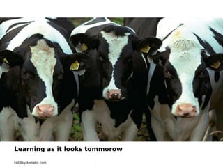 The document discusses strategies for developing a performance-driven and employee-centered learning culture. It advocates for learning interventions that are grounded in business needs and that minimize time to performance through relevance, realism, and iteration. The document also lists potential barriers to learning such as generic training programs and lists potential initiatives to overcome these barriers such as inspiration models, project-specific learning, and performance support offerings.