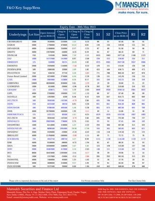 This document provides a summary of key support and resistance levels for various stocks and indexes in the futures and options market. It lists the underlying asset, open interest, change in open interest, and support and resistance levels based on previous closing prices. The information is intended as a reference for private clients of Mansukh Securities and Finance Ltd to analyze the futures and options market.