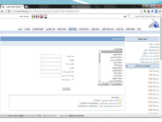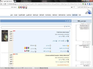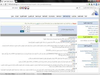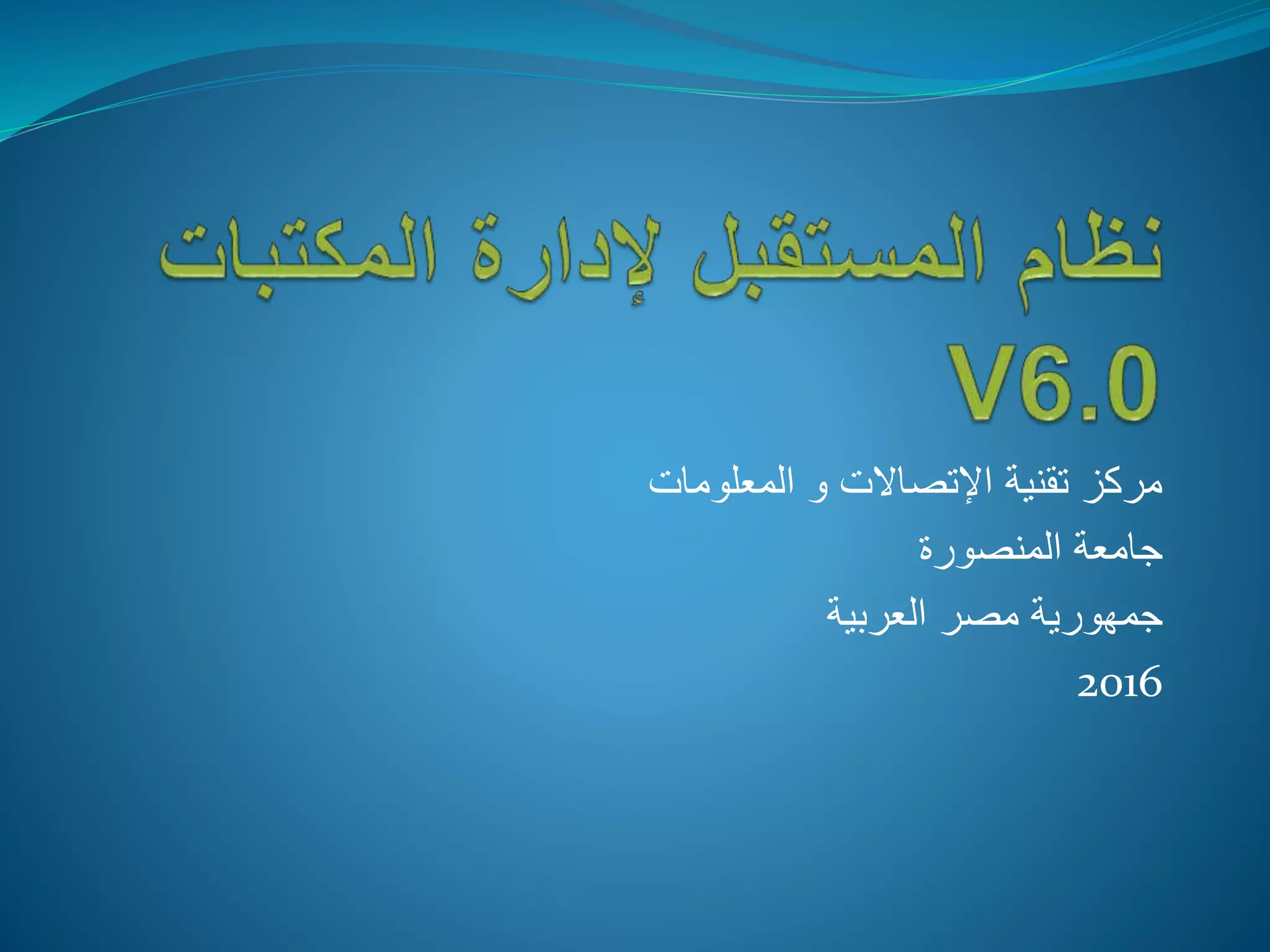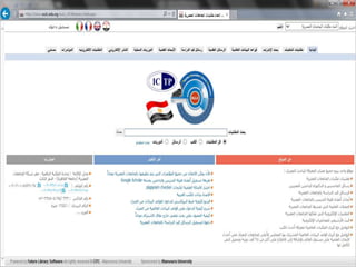 يوفر مركز المعلومات والإتصالات بجامعة المنصورة نظامًا متكاملًا لإدارة المكتبات يشمل جميع خدمات المكتبة مثل البحث عن المقتنيات وإدارة الدوريات والرسائل العلمية. النظام يدعم المعيار العالمي ويتيح الوصول إلى بيانات مكتبات عالمية ويعمل بالكامل على الويب. كما يتيح إدارة المخازن والحسابات وتقديم خدمات مرجعية للمستفيدين بكفاءة.