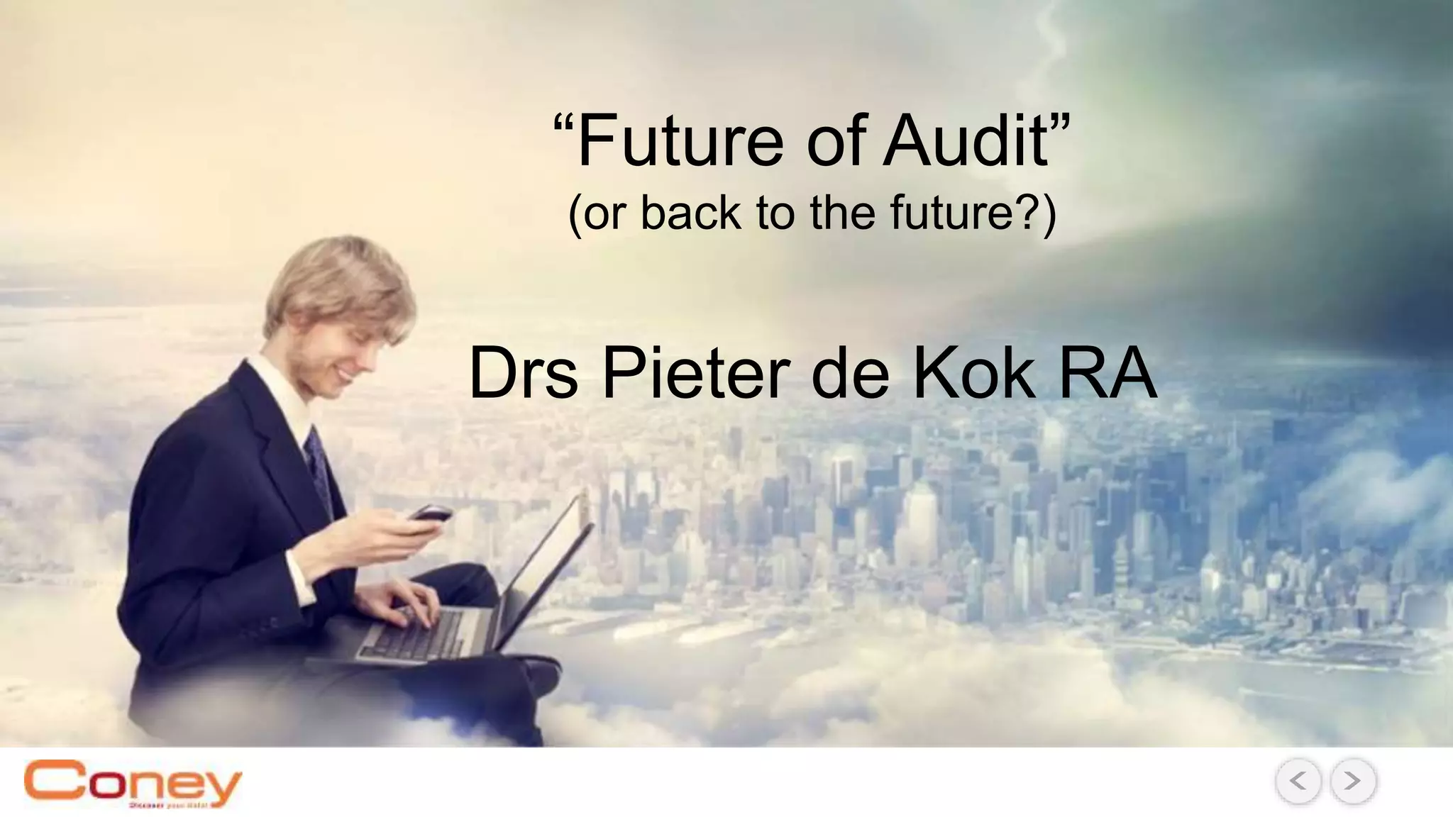 The document discusses the future of auditing, emphasizing the need for integration of advanced data analytics and process mining to improve efficiency and client value. It outlines key objectives for enhancing assurance services over the next 3 to 5 years, including the development of standardized audit data, automation of audit processes, and the use of predictive analytics. Furthermore, it anticipates a shift towards 'assurance on demand', utilizing new technologies and media for a more responsive and engaging auditing approach.