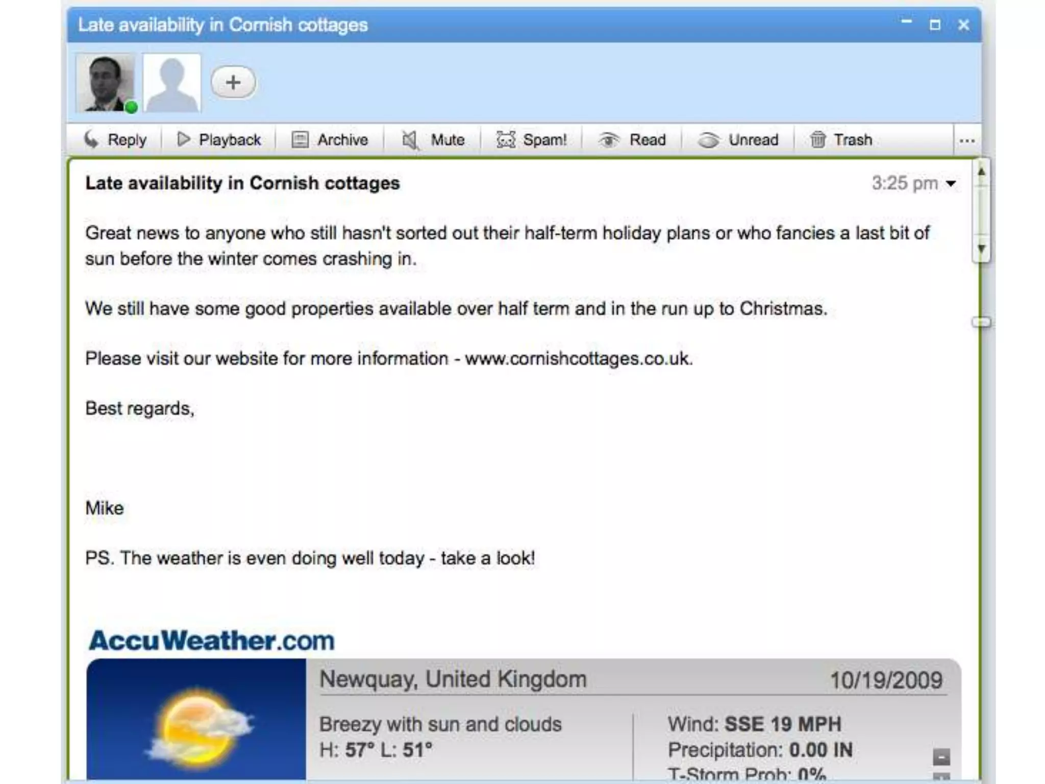 The document discusses the evolving role of email in marketing and customer communication, emphasizing its continued popularity and effectiveness despite the rise of social media and messaging platforms. It cites various statistics and surveys indicating strong ROI for email marketing and trends in consumer preferences toward different communication channels. Additionally, it mentions the potential future of customer service through platforms like Google Wave and other interactive tools.