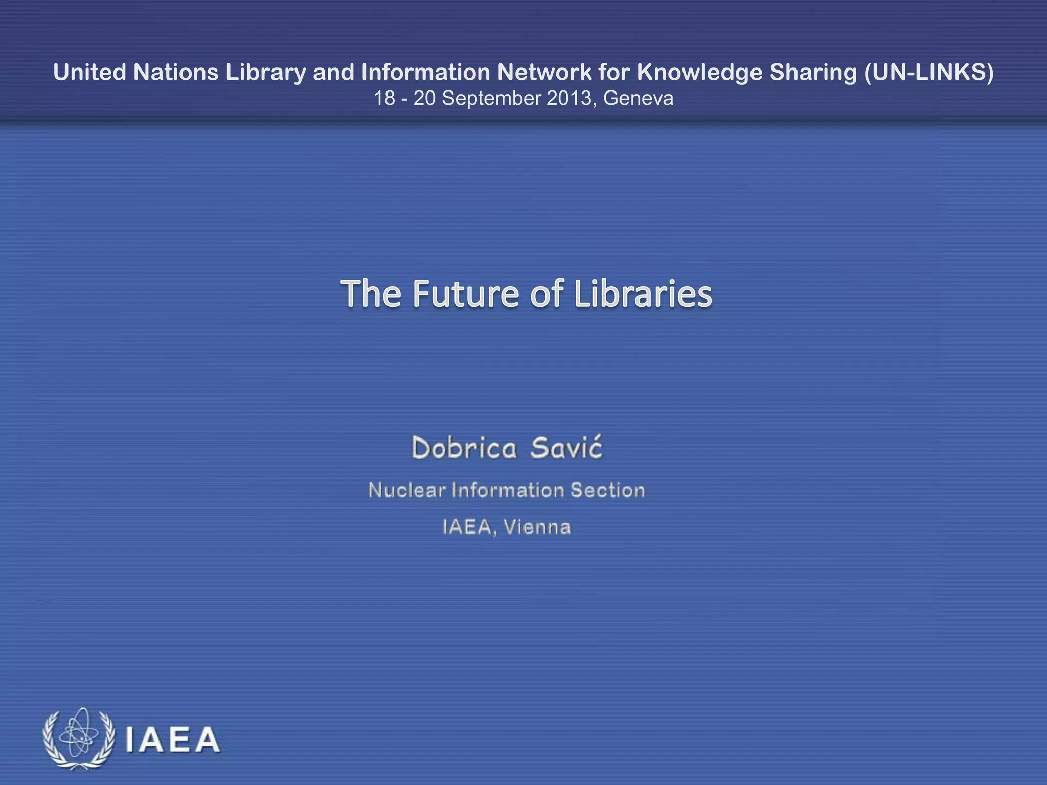 The document discusses the future of libraries, emphasizing challenges such as declining usage, budget cuts, and the impact of digital technology on traditional library roles. It outlines current trends in library services, including a shift toward online access and knowledge management, and raises concerns about the potential disappearance of librarians. The text also suggests strategies for adapting to these changes, focusing on the need for libraries to evolve into virtual spaces and provide digital content and training.