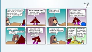 The document discusses the future of performance management, emphasizing the need for organizational alignment through modern practices. It critiques traditional appraisal systems that have failed, promoting a shift to continuous feedback, employee empowerment, and a focus on improvement rather than comparison. Key trends for 2015 include eliminating ratings, adopting a performance improvement mindset, building trust, and using data analytics to enhance performance.