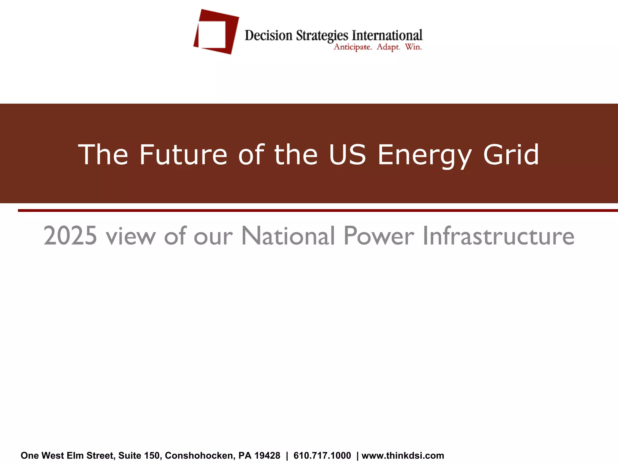 The document discusses the challenges and future scenarios for the U.S. energy grid, highlighting that approximately 60% of current assets must be replaced within the next decade, while demand is projected to increase by 30%. Four key scenarios are outlined based on various forces, including market, government actions, and technological advancements, which could either drive significant changes or maintain the status quo. The report emphasizes the need for strategic planning and investment to adapt to these potential future states and improve energy efficiency.