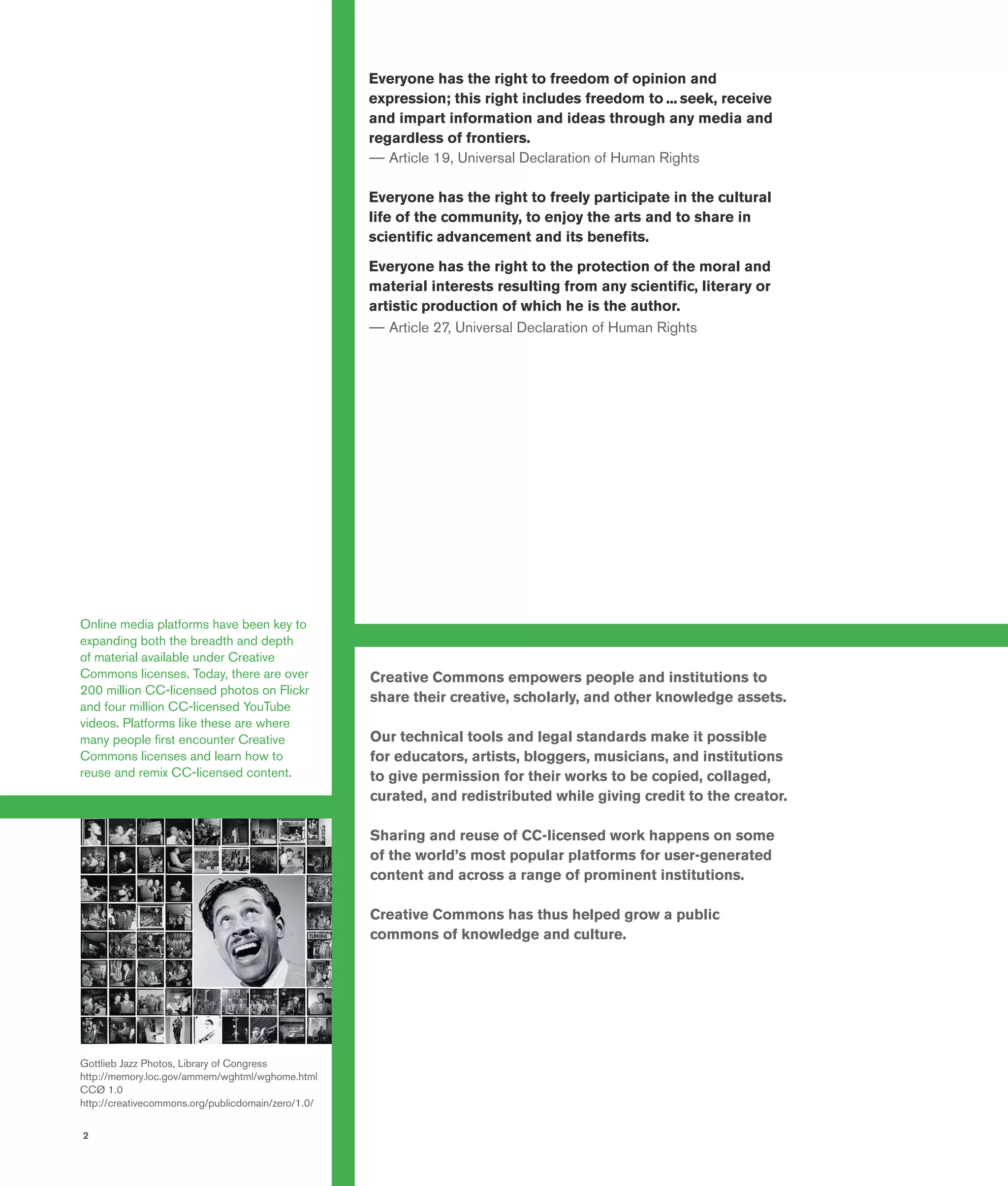 The document outlines Creative Commons' mission of empowering sharing and collaboration in a digital world while providing legal tools that allow creators to share their works under flexible licensing terms. It highlights achievements such as the vast quantity of Creative Commons-licensed content available online and the growing adoption of open educational resources by governments and educational institutions. Moving forward, Creative Commons aims to enhance its network, develop new products, and strengthen the global commons through strategic initiatives and community engagement.