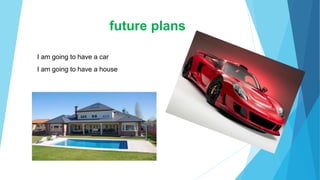 The document outlines an individual's future plans which include obtaining a car and house, traveling to Paris and various other locations, starting a foundation to help dogs and cats as well as a business, pursuing a career in administration and owning property in Melgar, having a son and good health and prosperity, marrying their boyfriend, helping those in need, having a united family and caring for the planet, buying a home for their mother while remaining humble, and giving their son, mother, and family a good future.