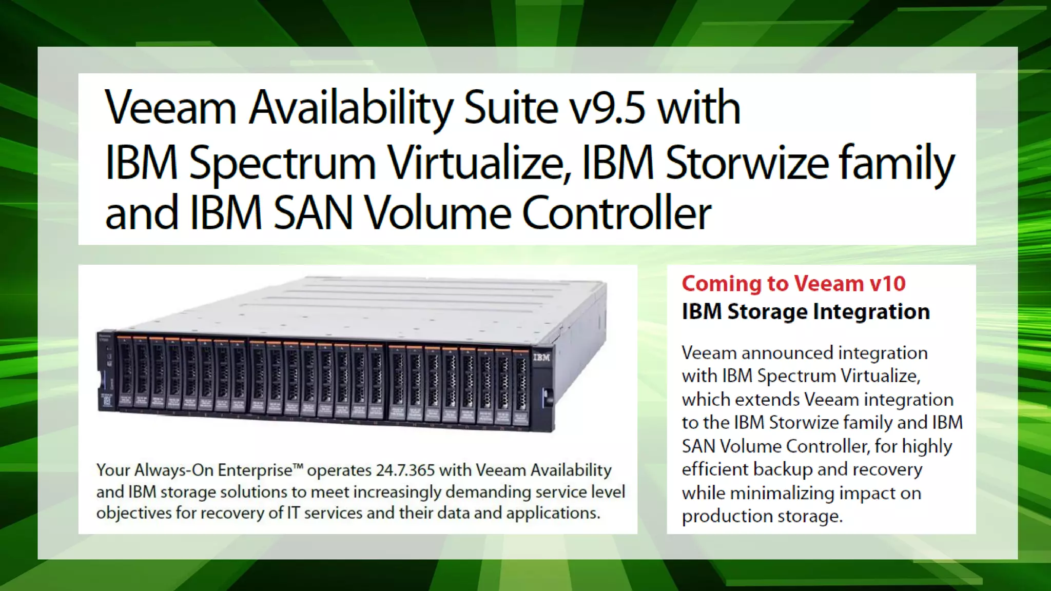 IBM's storage solutions leverage software-defined storage architecture to provide a robust platform for hybrid cloud and cognitive applications, ensuring efficient data management and protection. The IBM Spectrum Storage suite offers a comprehensive range of tools and features for data control, backup, and optimization, with a focus on hybrid cloud deployments. Collaborations with Veeam enhance backup and recovery processes, particularly for VMware environments, leveraging fast and reliable IBM FlashCopy snapshots.