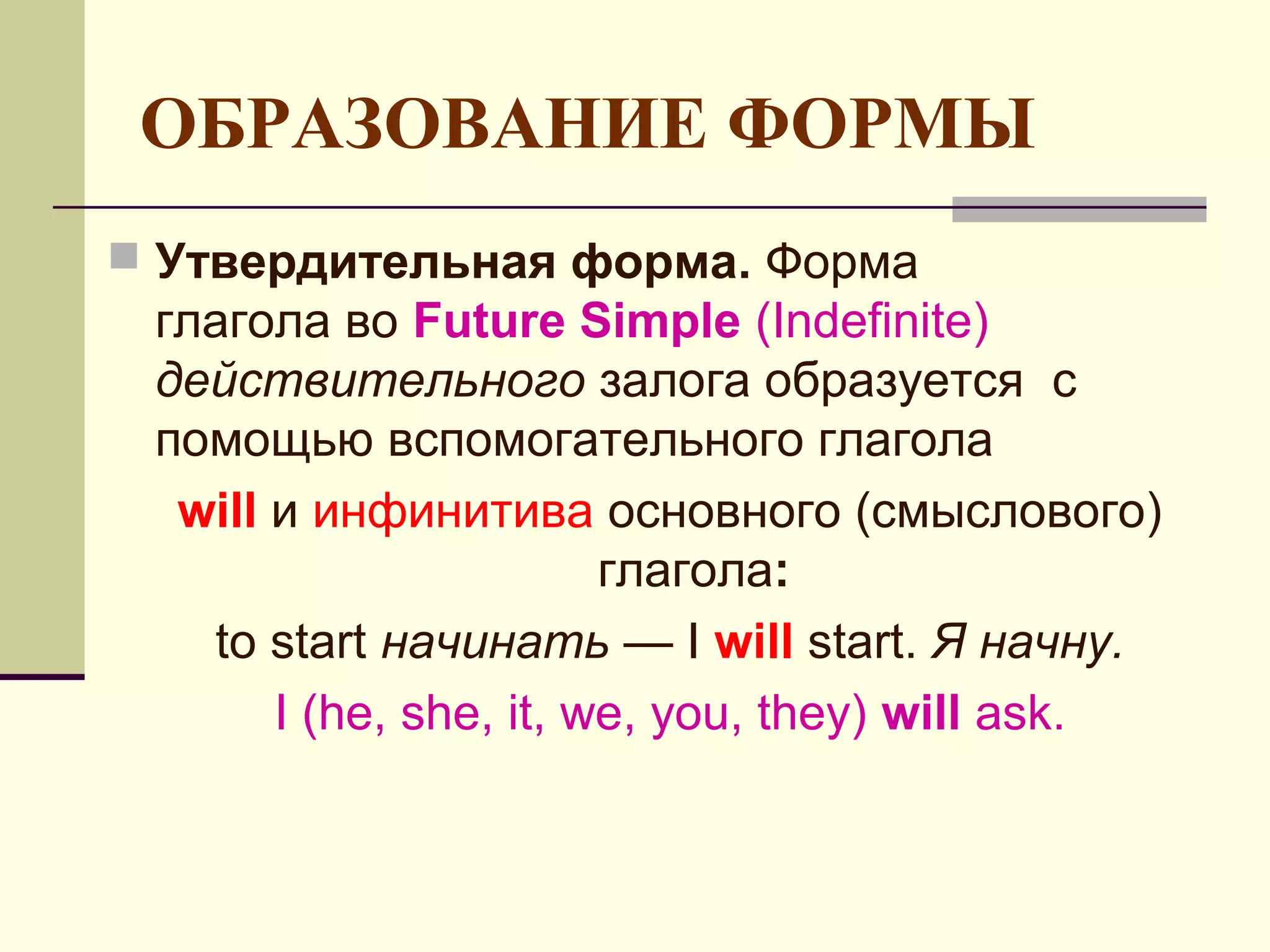 Документ описывает образование и использование форм простого будущего времени (future simple) в английском языке, включая утвердительные, отрицательные и вопросительные формы. Он объясняет, как формы will и shall применяются в разных контекстах, а также предоставляет примеры использования в предложениях. Также рассматриваются случаи употребления future simple для обозначения будущих действий, последовательности событий и общеизвестных фактов.
