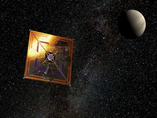 The document discusses several futuristic models for space travel, including solar sails that use radiation pressure to propel large mirrors, nuclear pulse propulsion that uses nuclear explosions in stages to accelerate to near light speed, and warp drive which uses gravitational effects to compress and expand space-time to allow for faster-than-light travel. Current research projects exploring these concepts are mentioned, with the implication that sci-fi technologies like warp drive may become reality within the next 50 years.