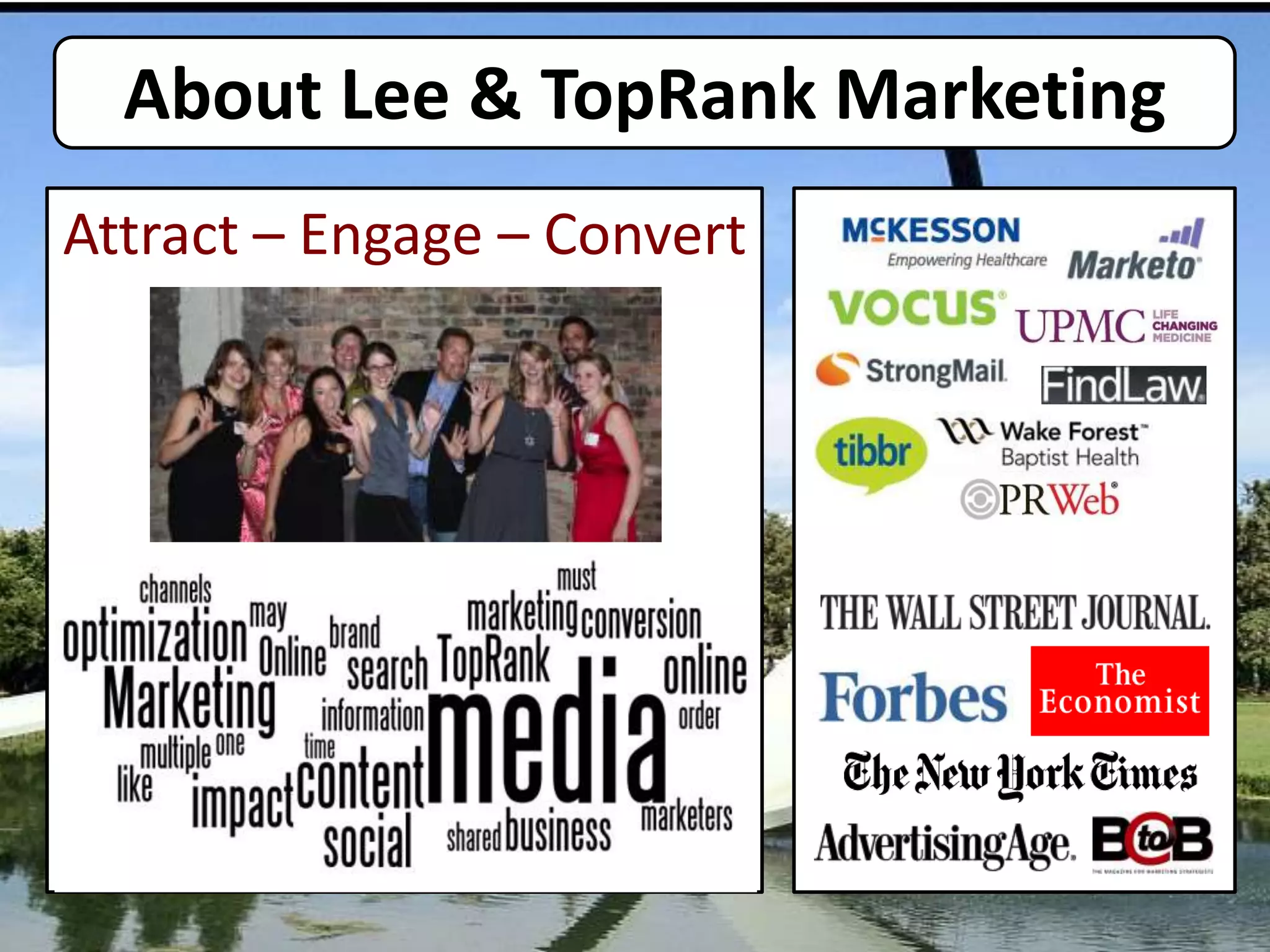 The document discusses the future of web content marketing, highlighting trends, consumer-driven models, and successful strategies for engagement and conversion. It emphasizes the increasing importance of content consumption, diverse distribution channels, and the need for companies to adapt to modern marketing practices. Key takeaways include the necessity of quality content and integration of various media for effective marketing.