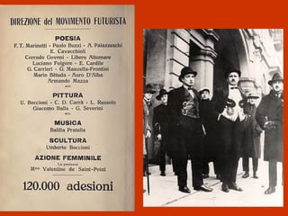 Il manifesto del Futurismo, redatto da Filippo Tommaso Marinetti, esalta il valore della velocità, del movimento e della ribellione contro la tradizione, sostenendo che la poesia deve essere un atto di aggressione contro le forze ignote. Il Futurismo glorifica la guerra e il militarismo, rifiutando il moralismo e l'opportunismo, e propone una visione del mondo che celebra la modernità e il dinamismo delle macchine. Umberto Boccioni, principale esponente del Futurismo, contribuisce con opere come 'La città che sale' e 'Forme uniche nella continuità dello spazio' che rappresentano l'energia e il movimento tipici di questo movimento artistico.