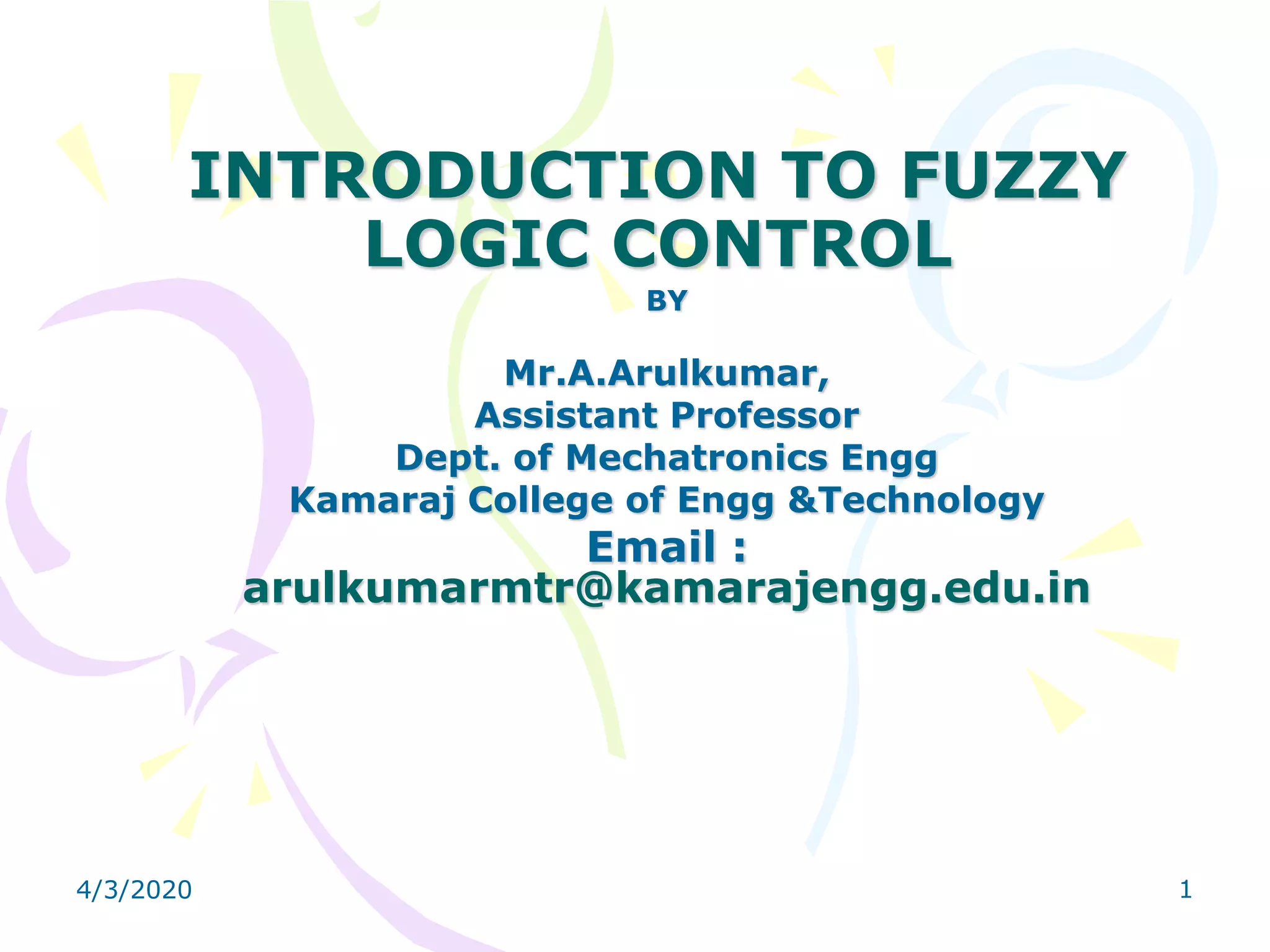 Fuzzy logic is a form of multivalued logic that allows intermediate values between conventional evaluations like true/false, yes/no, or high/low. It provides a mathematical framework for representing uncertainty and imprecision in measurement and human cognitive processes. Fuzzy logic systems use fuzzy membership functions and fuzzy "IF-THEN" rules to map inputs to outputs. They include fuzzification of inputs, an inference system to evaluate rules, aggregation of outputs, and defuzzification to produce a crisp output. Common applications include controllers that can handle complex or imprecise inputs better than conventional digital controllers.