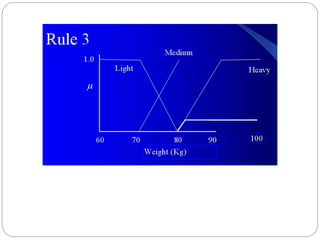 The document discusses fuzzy rule-based systems and fuzzy reasoning. It defines fuzzy if-then rules which have antecedents and consequents that are fuzzy sets rather than binary variables. Fuzzy reasoning can involve single or multiple rules with single or multiple antecedents. Graphical representations are used to illustrate the fuzzy reasoning process. The types of fuzzy inference systems including Mamdani and Sugeno systems are described along with their components and working. Applications of fuzzy logic in various domains are also mentioned.