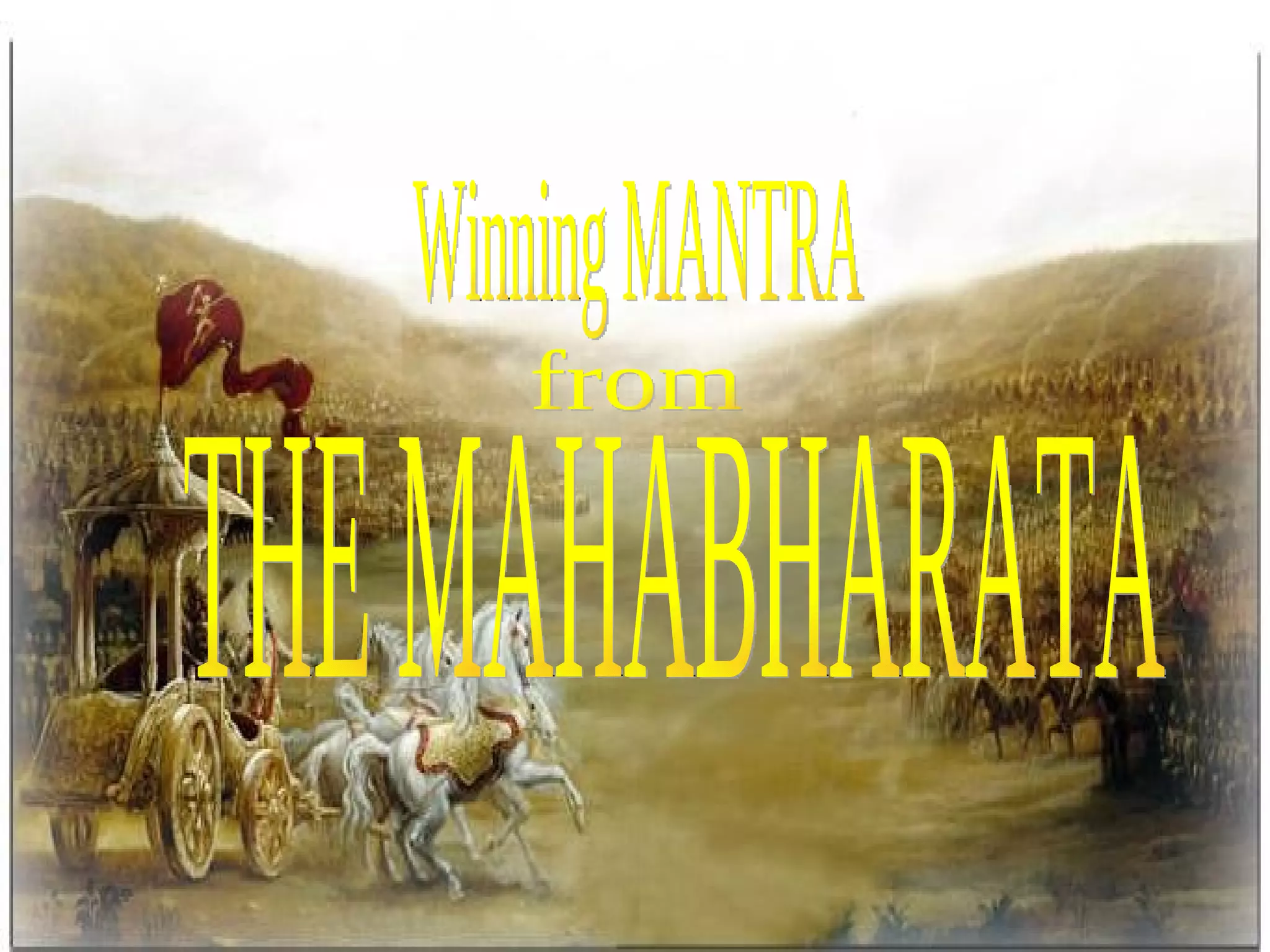 The document discusses the Mahabharata as a complex epic that includes themes of philosophy, strategy, and teamwork amidst the backdrop of a legendary war between the Pandavas and Kauravas. It contrasts the strengths and weaknesses of both factions, highlighting the importance of leadership, alliances, commitment, and understanding ground realities. Key takeaways emphasize the significance of shared responsibilities, the balance of gender dynamics, and the value of turning weaknesses into strengths for successful outcomes.