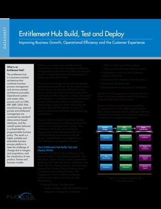 Flexera Software provides consulting services to help companies design, implement, integrate and deploy entitlement management solutions. The Entitlement Hub Build, Test and Deploy engagement assists with developing a detailed design for integrating a company's systems with an entitlement management hub. It includes implementing and testing components, integrating the hub, and providing support through go-live and post go-live. The engagement delivers a fully implemented entitlement hub integrated with back office systems to provide faster time to market for new entitlement management solutions.