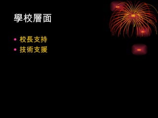 该文档讨论了在学校层面和科组层面上实现知识建构的策略,包括校长的支持和技术支持。强调了试点推行和教师发展的重要性,倡导以老带幼和协作教学的方式促进教师共同成长。