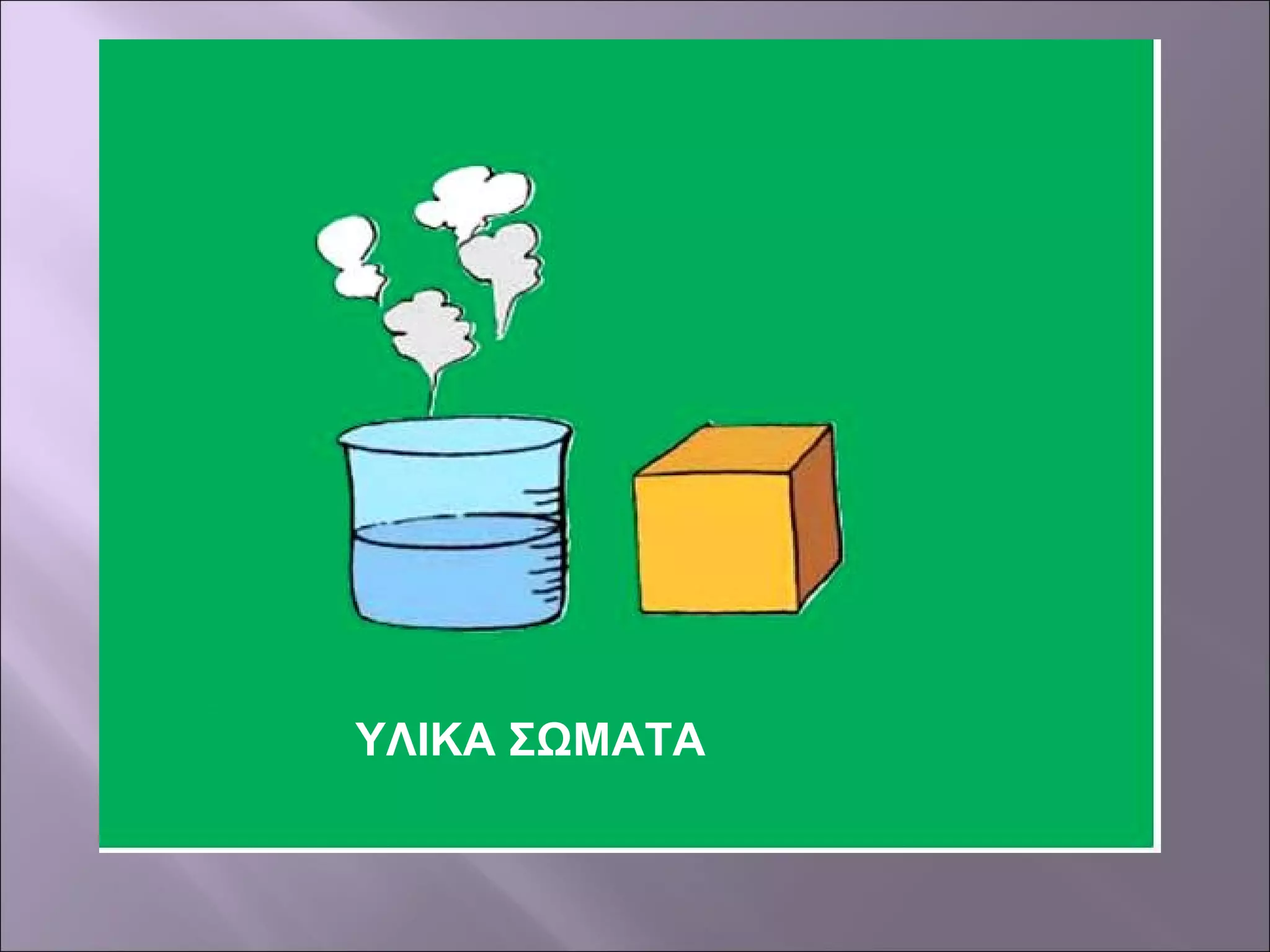 Τα υλικά σώματα τα διακρίνουμε εύκολα σε στερεά, υγρά και αέρια,