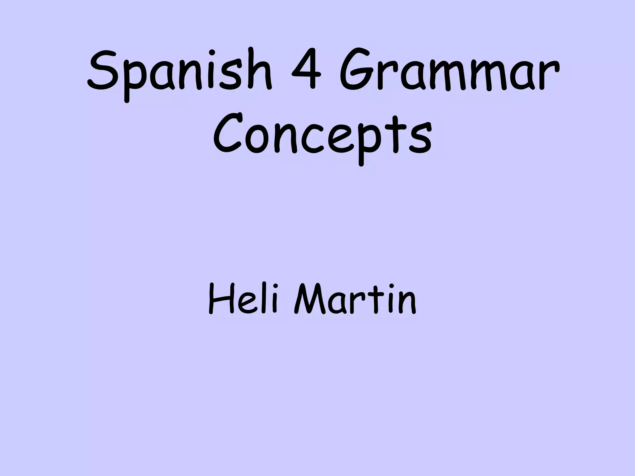 The document provides an overview of key Spanish 4 grammar concepts including: