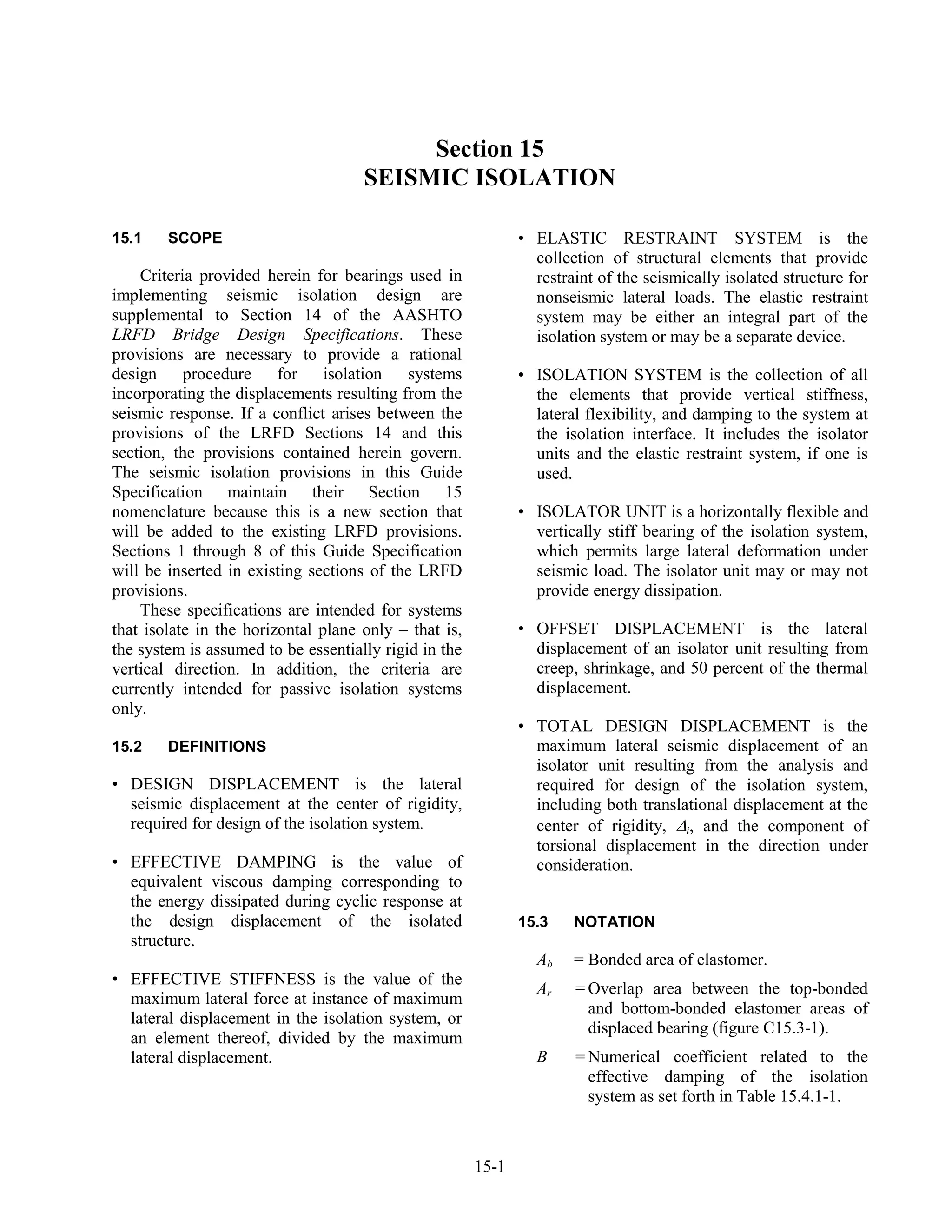 - It outlines criteria for bearings used in seismic isolation design that supplement other AASHTO specifications.