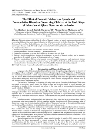 1. The study aimed to identify the effect of domestic violence on speech and pronunciation disorders in children in basic education in Ajloun governorate, Jordan.
