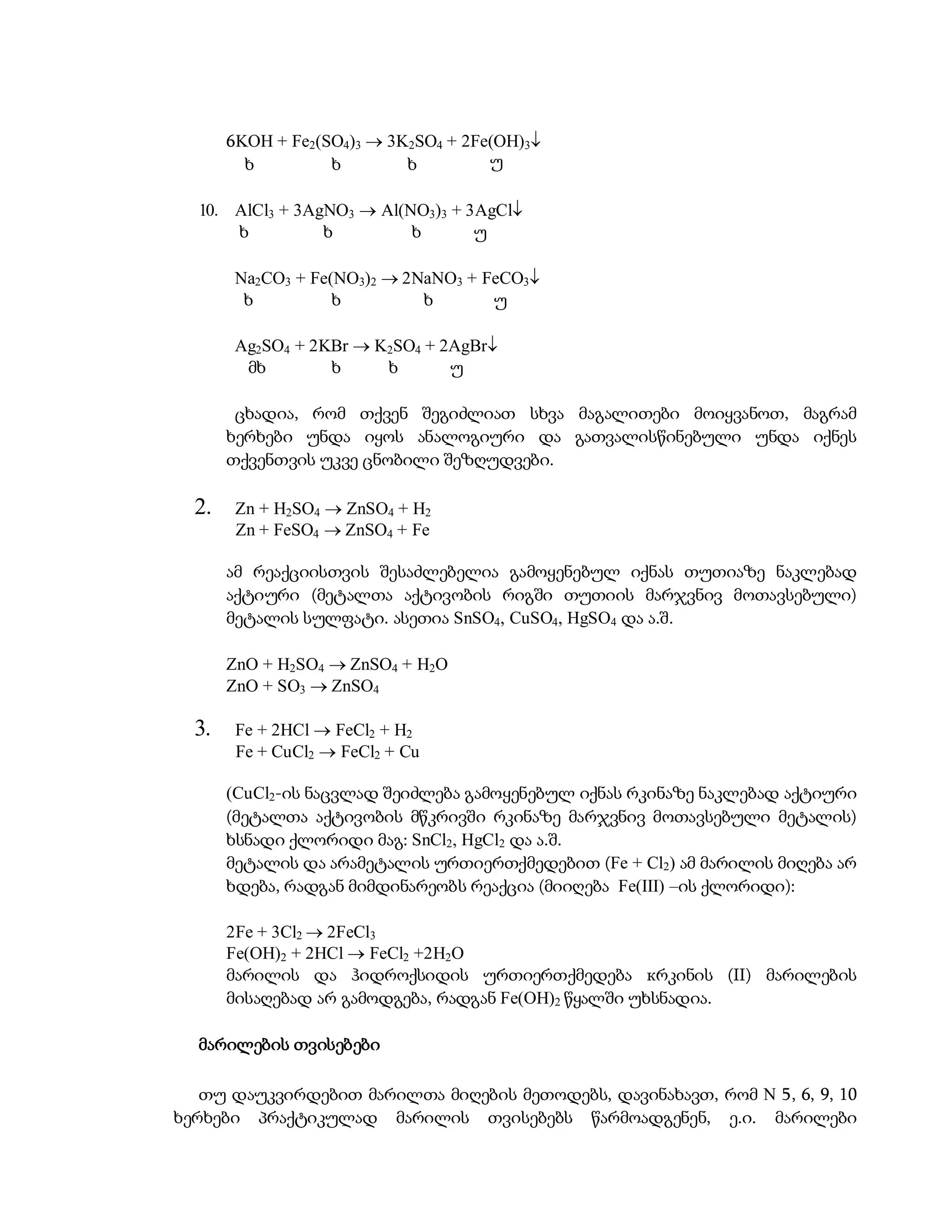 2. მეტალი + მარილი ახალი მარილი + ახალი მეტალი