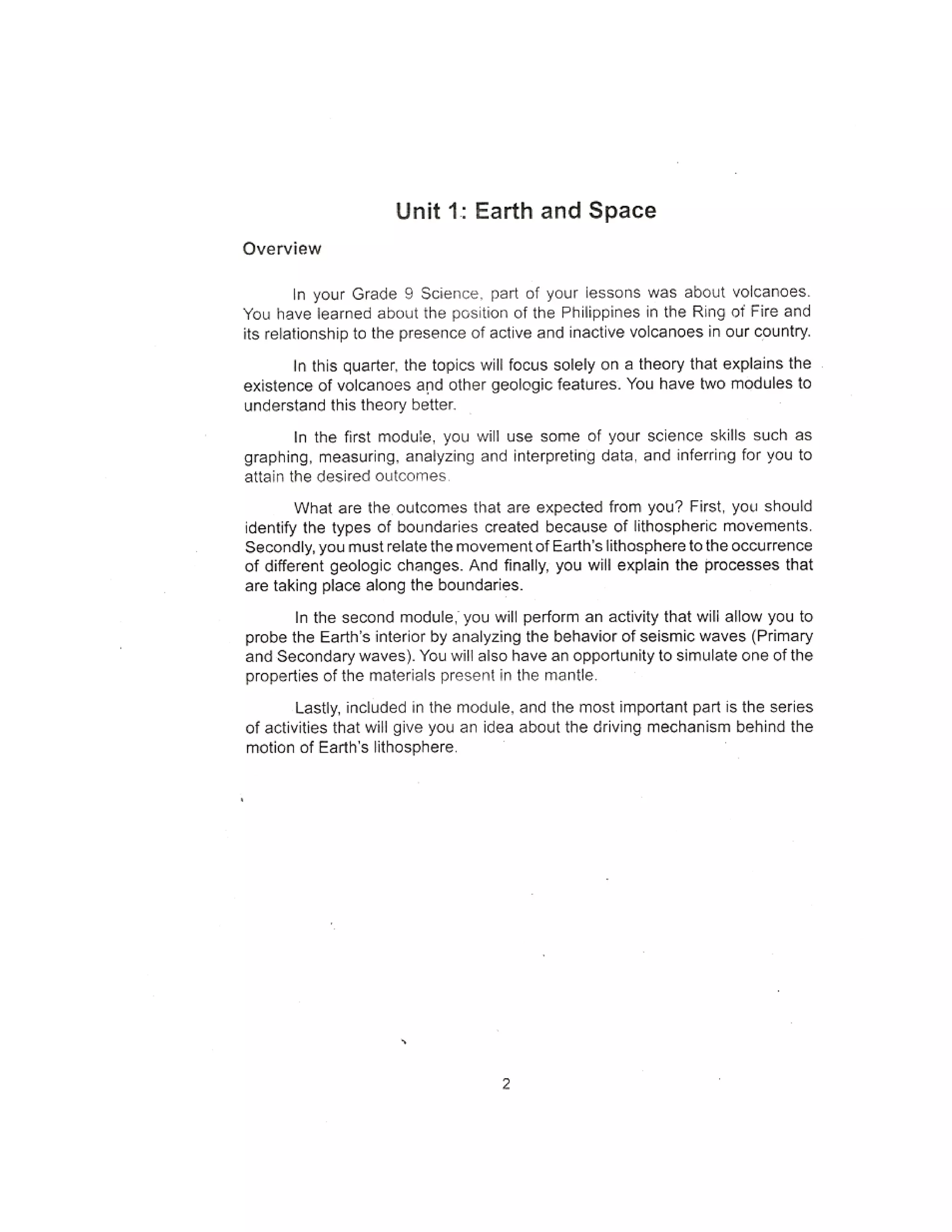 G10 Science :Earth and Space -Learner's Module 1st Quarter