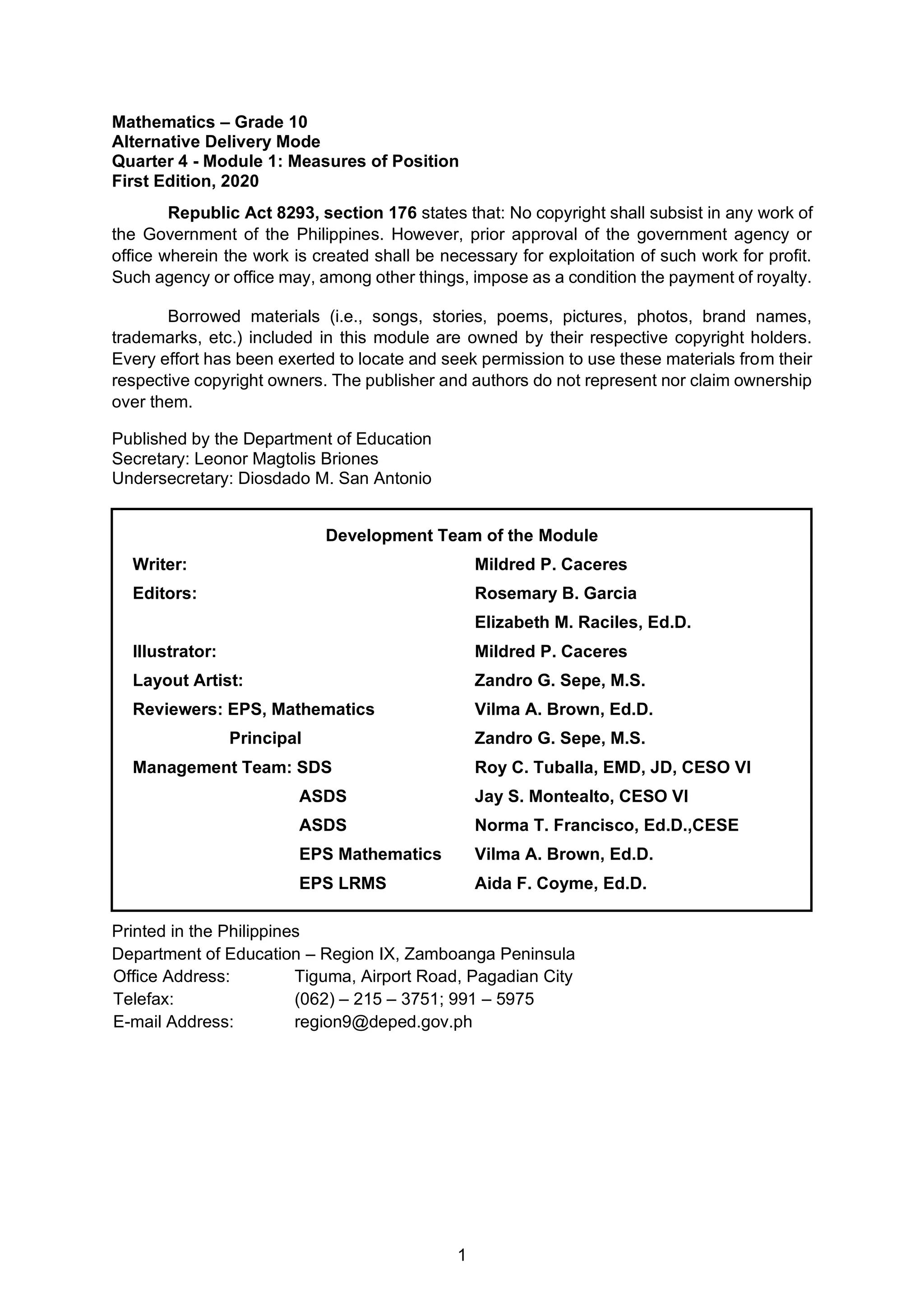 Quarter 4 - Module 1: Measures of Position