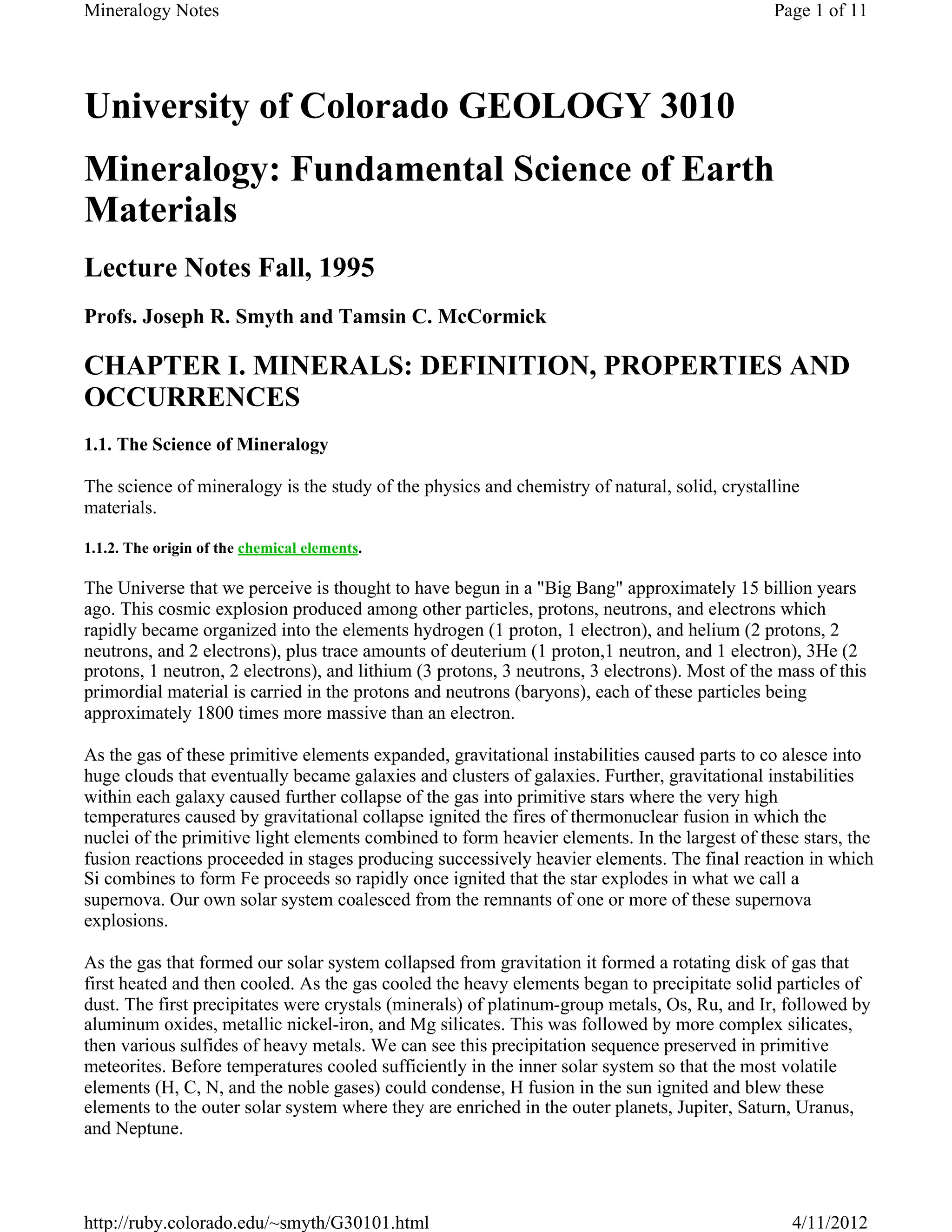This document provides an overview of mineralogy and the definition of a mineral. It begins by explaining that mineralogy is the study of natural, solid, crystalline materials. It then defines a mineral as a naturally occurring, homogeneous solid with a definite but generally not fixed chemical composition and ordered atomic arrangement, usually formed by inorganic processes. The document discusses several key aspects of minerals, including their origin from the Big Bang, properties that can be examined in hand specimens like crystal form and hardness, and concepts like stoichiometry and polymorphism.