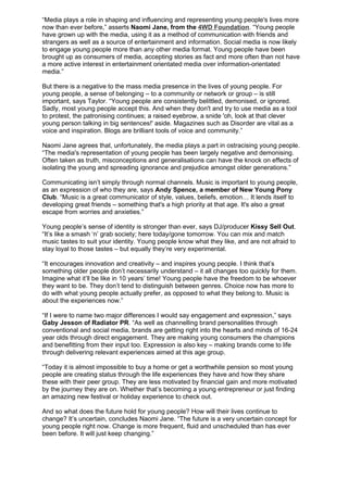 - However, the media often portrays young people negatively and the future remains uncertain as the pace of change continues to