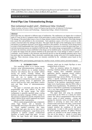 This paper presents a telemonitoring system designed to manage and control petrol pipelines using a field programmable gate array (FPGA) as the main processor. The system employs wireless cameras to monitor pipeline conditions in real-time, enabling immediate responses to malfunctions or attacks by shutting down pumps and closing solenoid valves. Ultimately, the design aims to enhance safety and minimize petrol loss while allowing flexibility and programmability in system operations.
