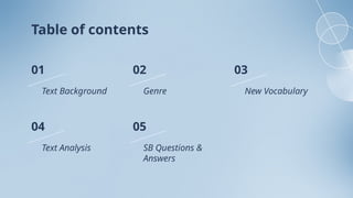• First-Person POV: The story is told by a character using "I" and "me." (Example: "I