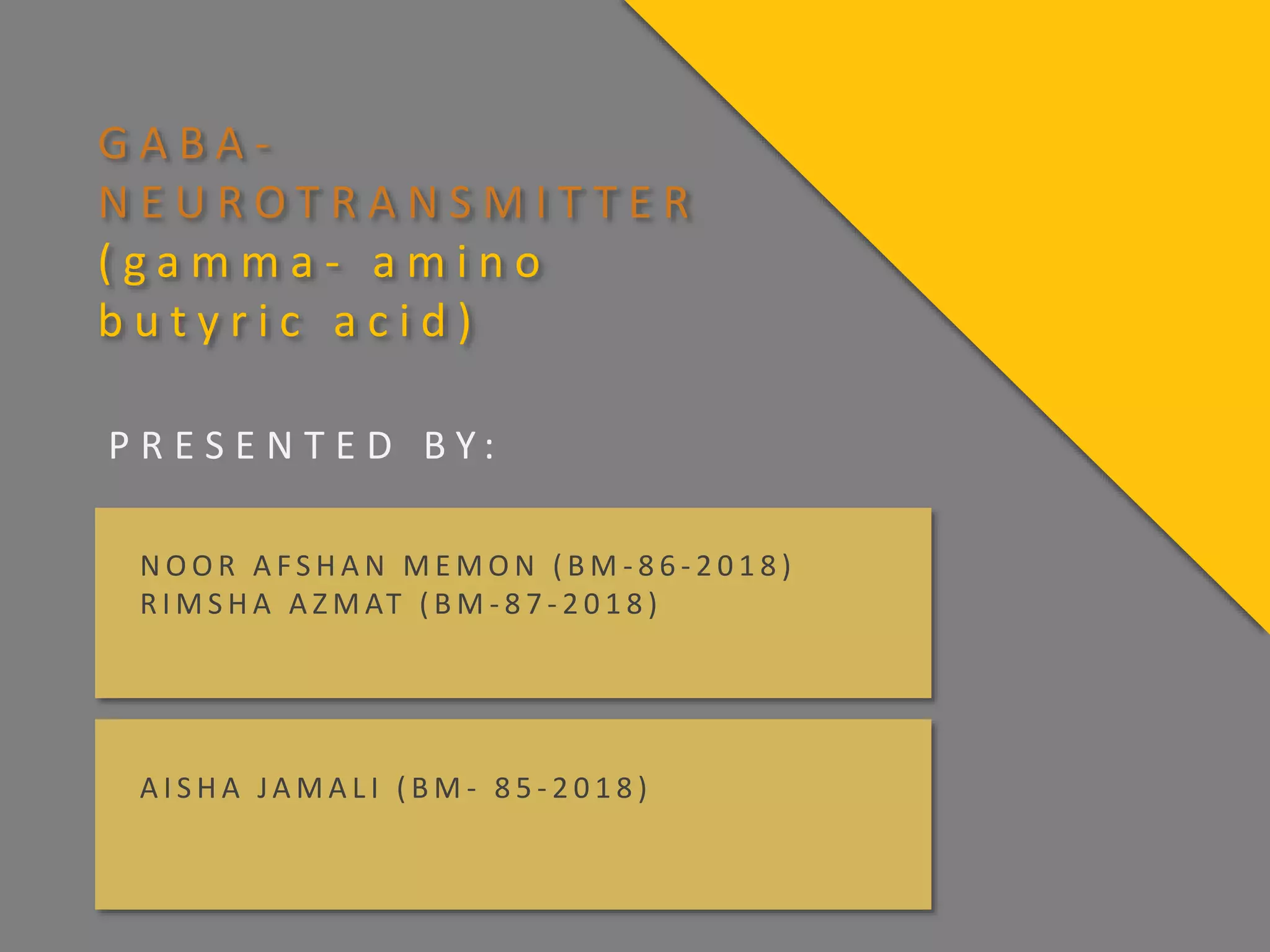 This document presents information about the neurotransmitter GABA (gamma-aminobutyric acid). It discusses that GABA was first identified as an amino acid in plants and microorganisms in the 19th century, and was isolated from mouse brain in the 20th century. It also notes that in 1950, Robert and Frankel discovered that GABA acts as an inhibitory neurotransmitter in the human brain. The document provides brief descriptions of how GABA is synthesized from glutamic acid by the enzyme GAD, stored in synaptic vesicles, and released into the synaptic cleft upon neuronal stimulation.