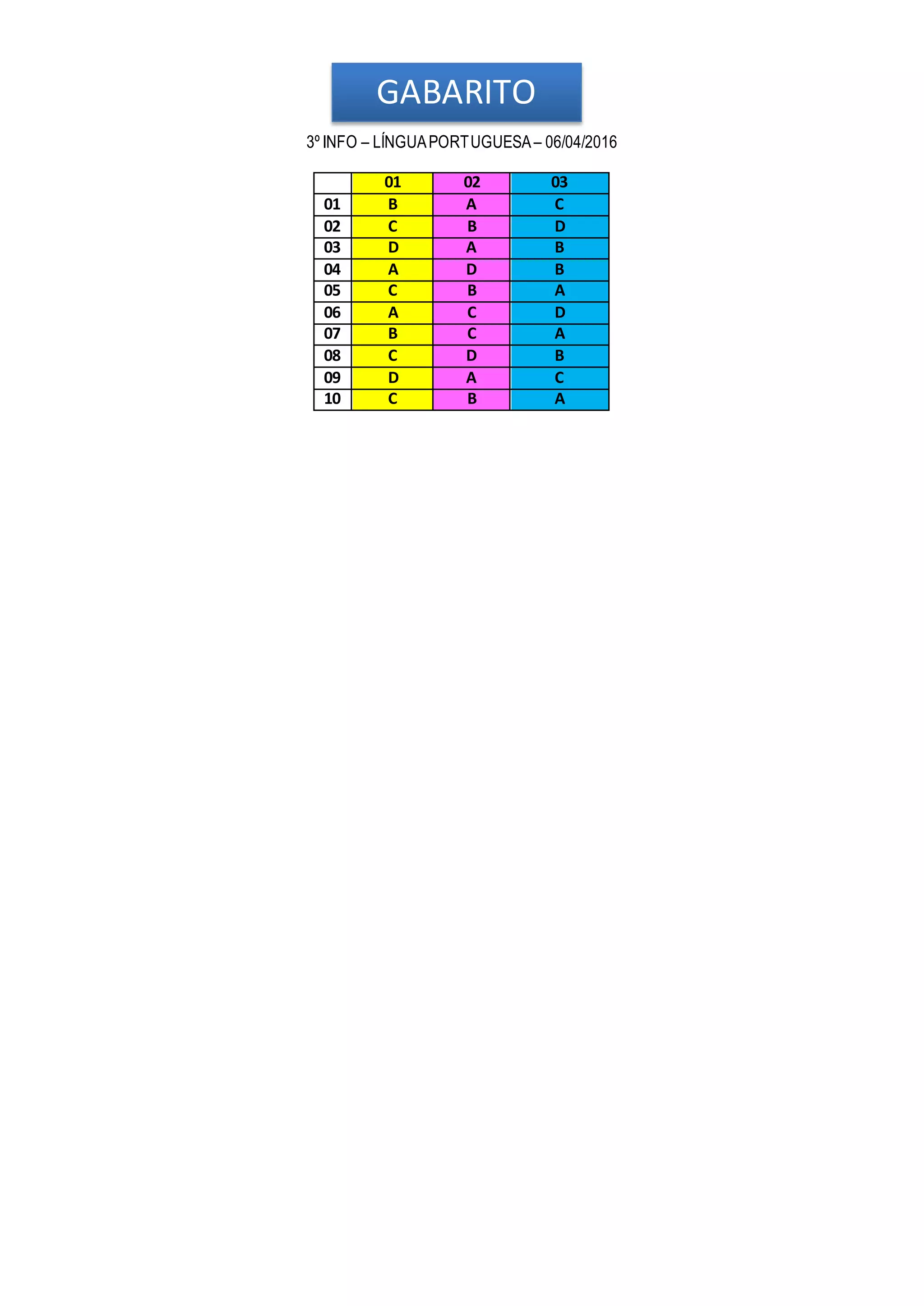 3º INFO –LÍNGUAPORTUGUESA– 06/04/2016