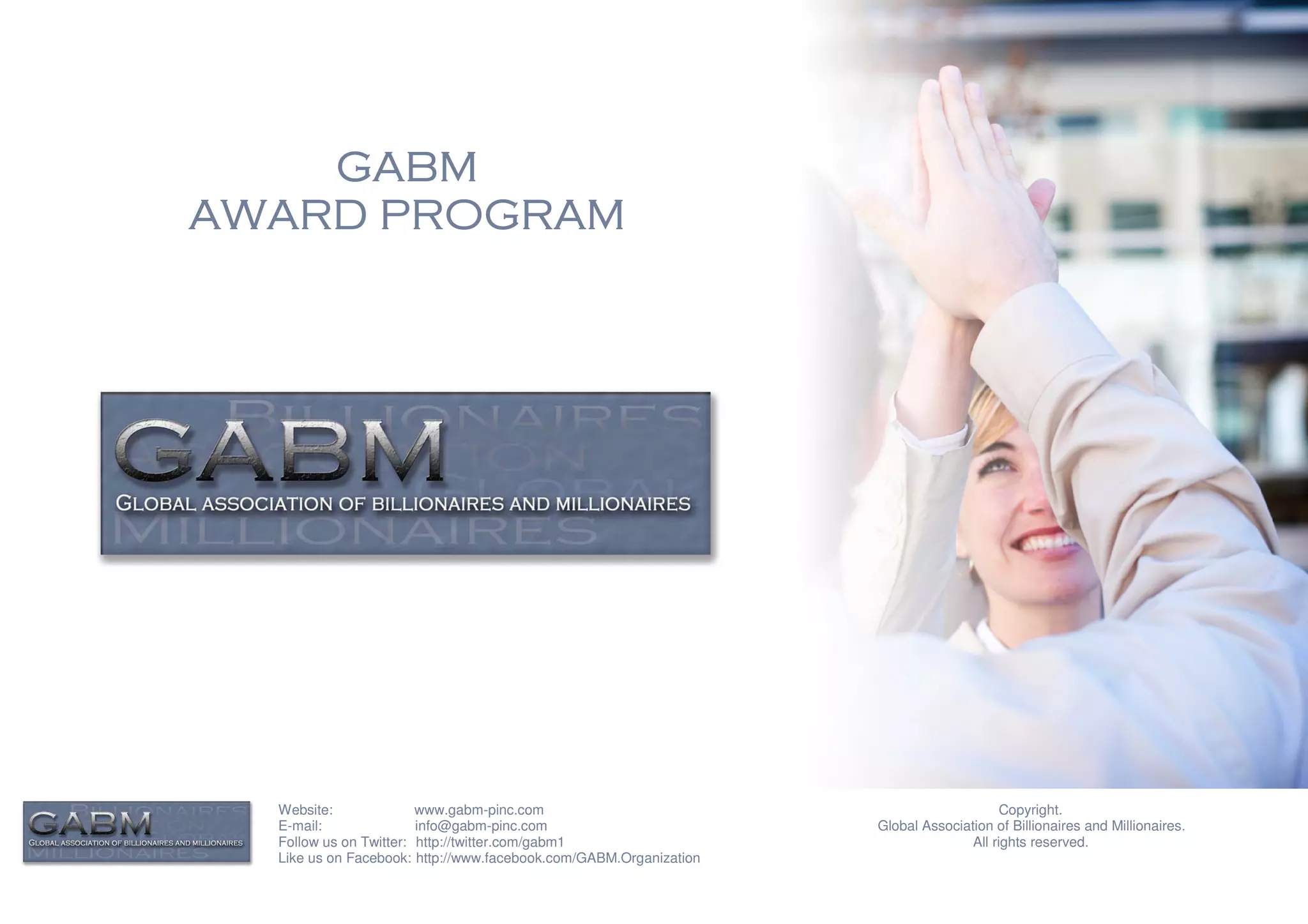 The Global Association of Billionaires and Millionaires (GABM) awards an annual "Best Corporate Citizen Award" across 28 industry categories to corporations that best demonstrate good corporate citizenship as determined by criteria in governance, trade practices, workplace culture, social responsibility, and environmental stewardship. Winners receive an electronic certificate and press coverage for their commitment to these values. Nominations are submitted by GABM members and winners are selected by the Board of Executives.