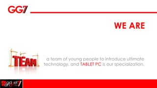 GadgetGang7 specializes in tablet PCs, emphasizing their portability and efficiency for professionals. They offer a range of products with features like long battery life and dual-core processors, along with a one-year replacement warranty and dedicated customer service. The company also engages in various marketing activities and supports clients from diverse sectors, including photography, healthcare, and education.