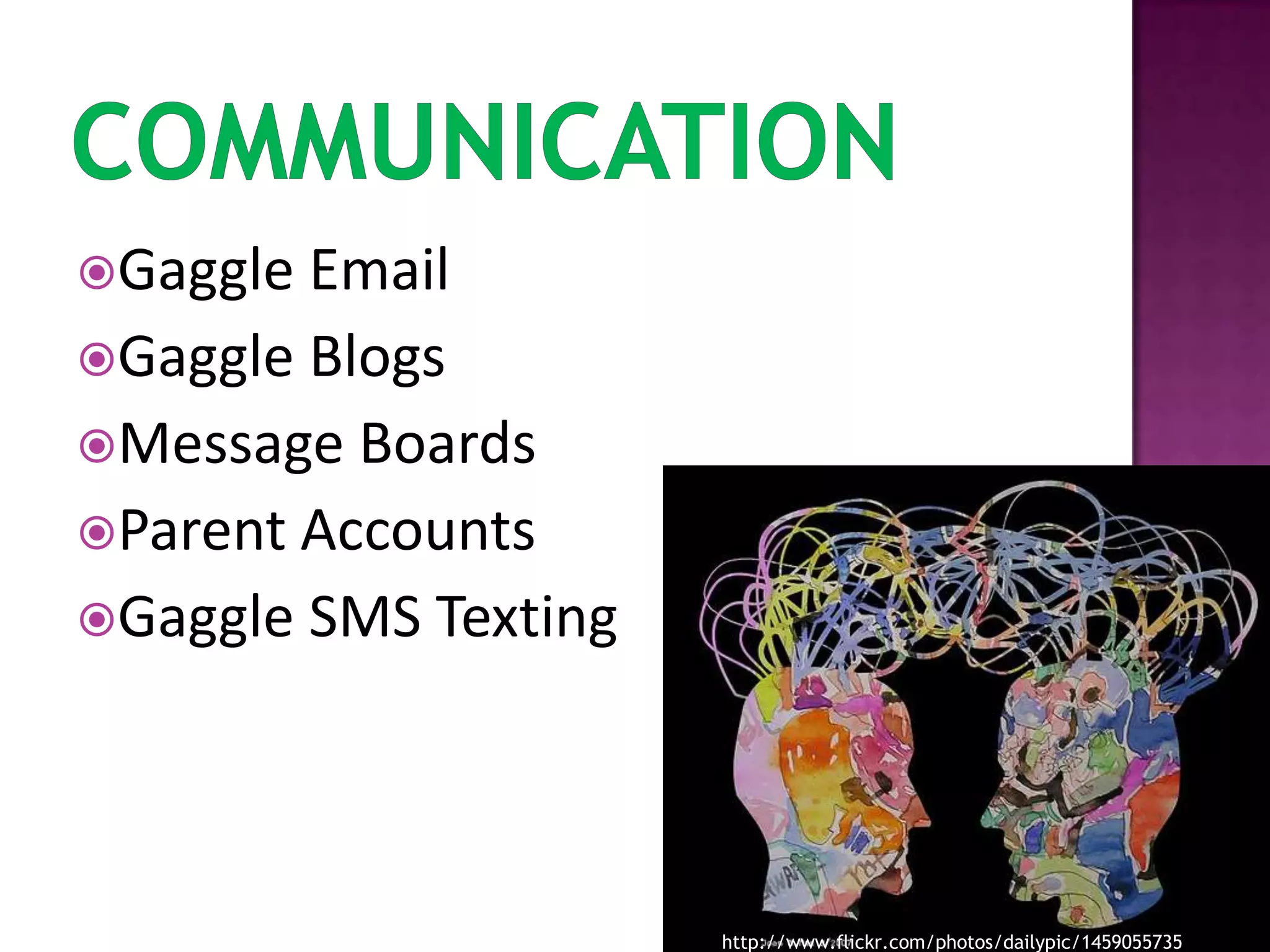 Gaggle is an online communication tool for teachers and students that allows for email, blogs, message boards, texting, and digital lockers. It facilitates collaboration through features like homework drop boxes, calendars, and chat rooms. Gaggle also enables social learning through blogs, chat rooms, and social media walls. The platform is designed with student safety in mind through spam and virus protection, content filtering, and controlled communication features.