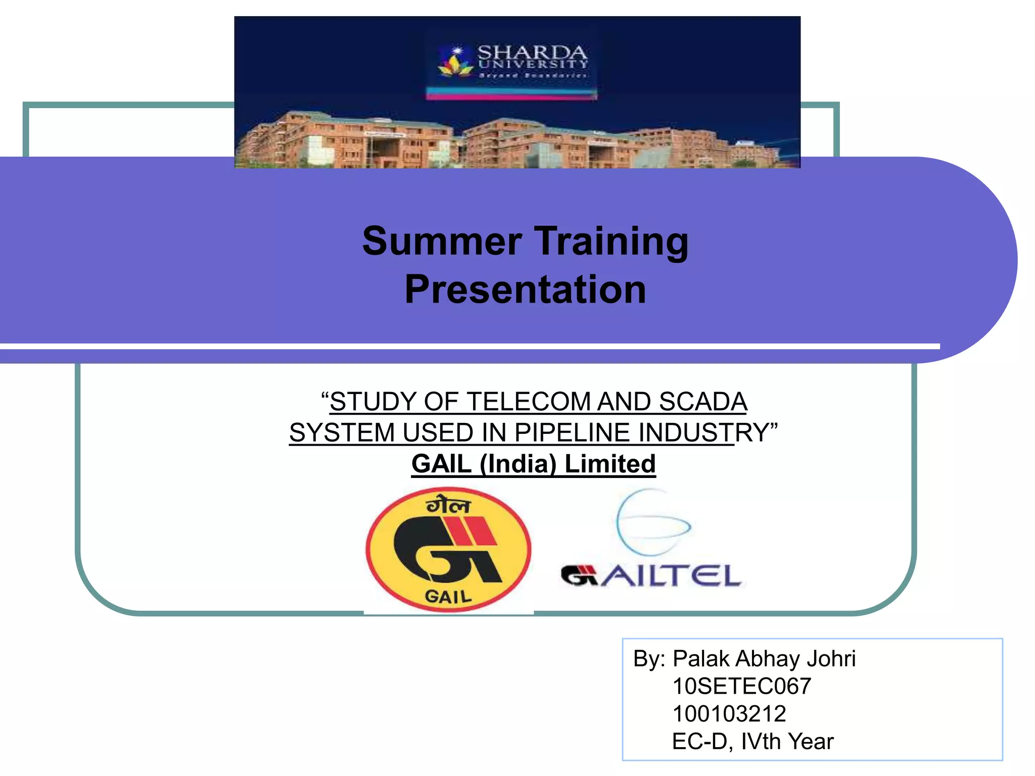 The document discusses the telecom and SCADA systems used in pipeline industries like GAIL (India) Limited. It provides details about GAILTEL, the telecom arm of GAIL which provides communication services for pipeline monitoring and control using a SCADA system. It also describes the optical fiber network, technologies like PDH, SDH, DWDM used for data transmission and the network management system. SCADA systems provide benefits like reliability, robustness and technical support for critical industrial processes.