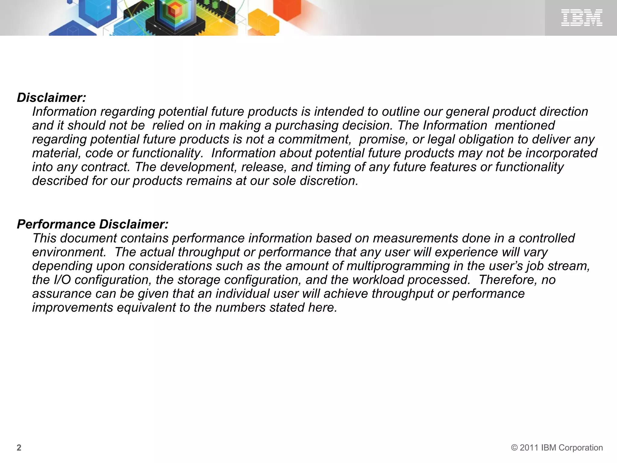 The document outlines performance enhancements in DB2 10 for z/OS, focusing on improvements over DB2 9, including scalability, CPU reductions, and monitoring enhancements. Key updates include better resource management, reductions in virtual storage usage, and optimizations in query execution, particularly with index and LOB processing. It also discusses potential performance results and considerations for users to leverage the new features effectively.