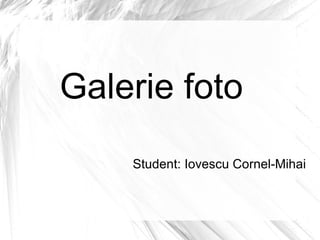 Documentul descrie un site dedicat iubitorilor de fotografie, care permite utilizatorilor să adauge, să comenteze și să noteze fotografii de calitate. Tehnologiile utilizate includ PHP pentru generarea dinamică a conținutului, MySQL pentru gestionarea bazelor de date, și CSS pentru stilizare. Site-ul are un design structurat pe un template și oferă pagini pentru navigare, înregistrare și detalii ale fotografiilor, iar utilizatorii pot încărca doar imagini în format JPEG.